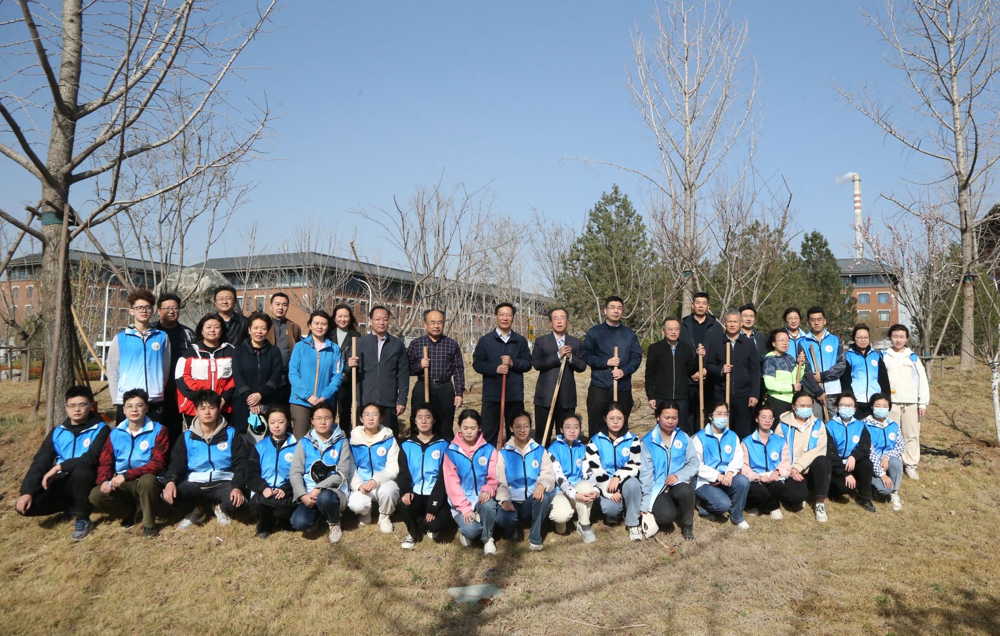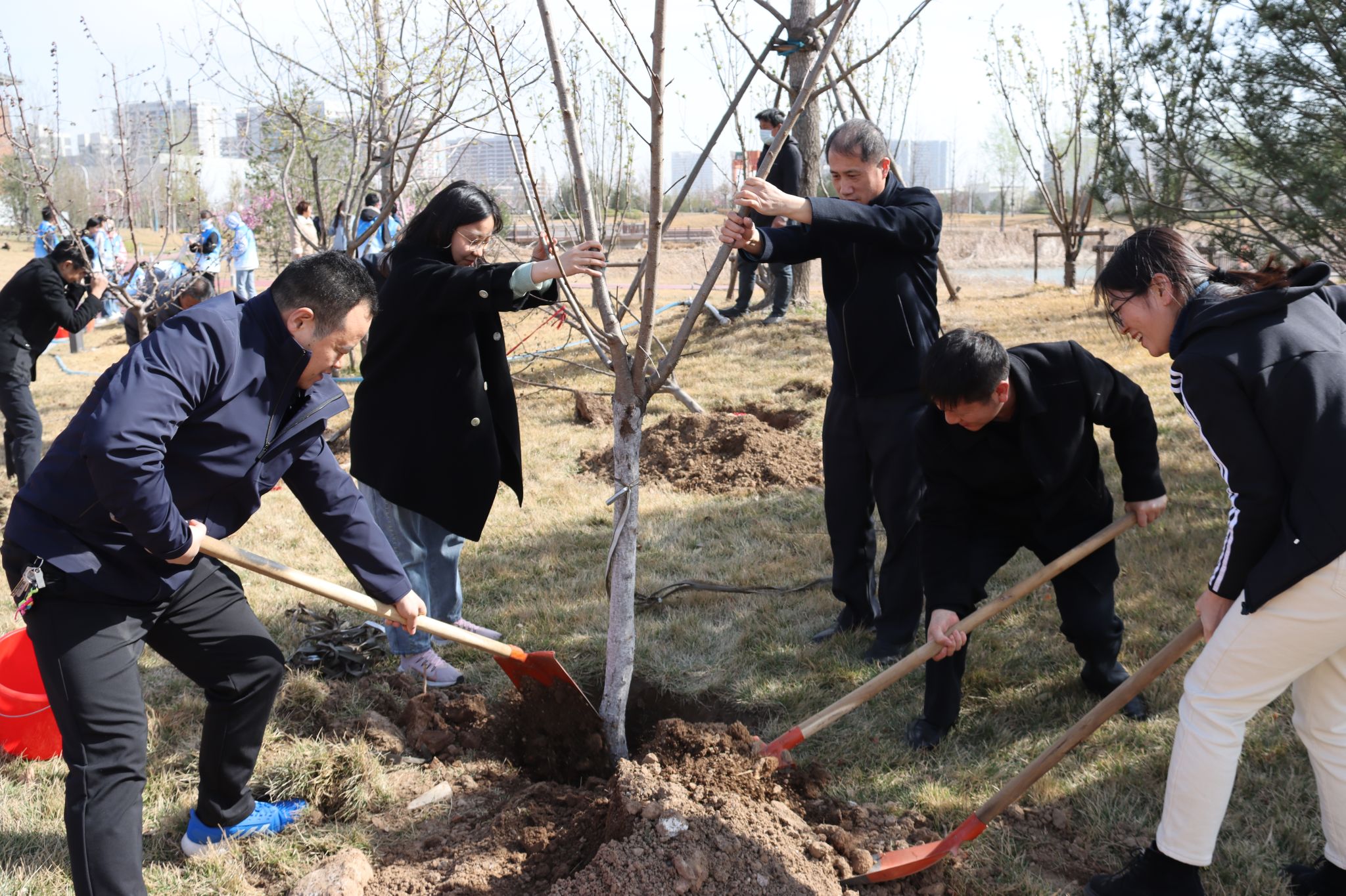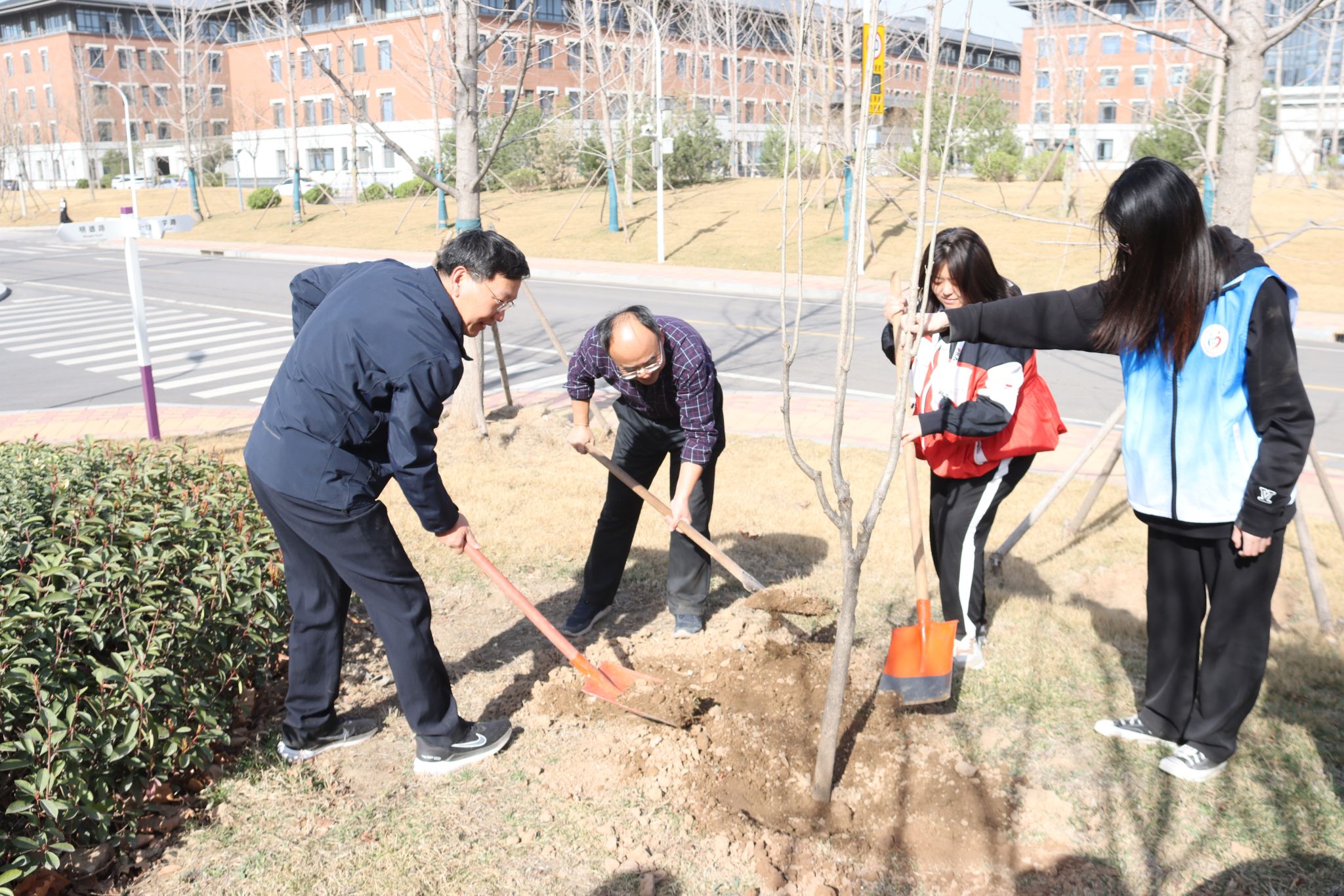 “数树新开翠影齐”,春日山一大,桃李芬芳,争相绽放,生机盎然。泉香湖畔,校(院)领导韩金祥、刘思金、吴向东、刘传勇、李栋、王宇轩、马鲁豫与教职工代表、学生志愿者开展植树活动。