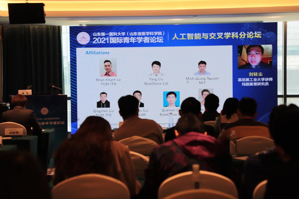 学术沙龙上,来自中国科学院、同济大学、山东大学、哥本哈根大学等的多位青年才俊分享了自己的研究工作,与会人员共同探讨人工智能赋能新医科建设带来的新趋势、新交叉、新应用,现场气氛热烈而活泼。