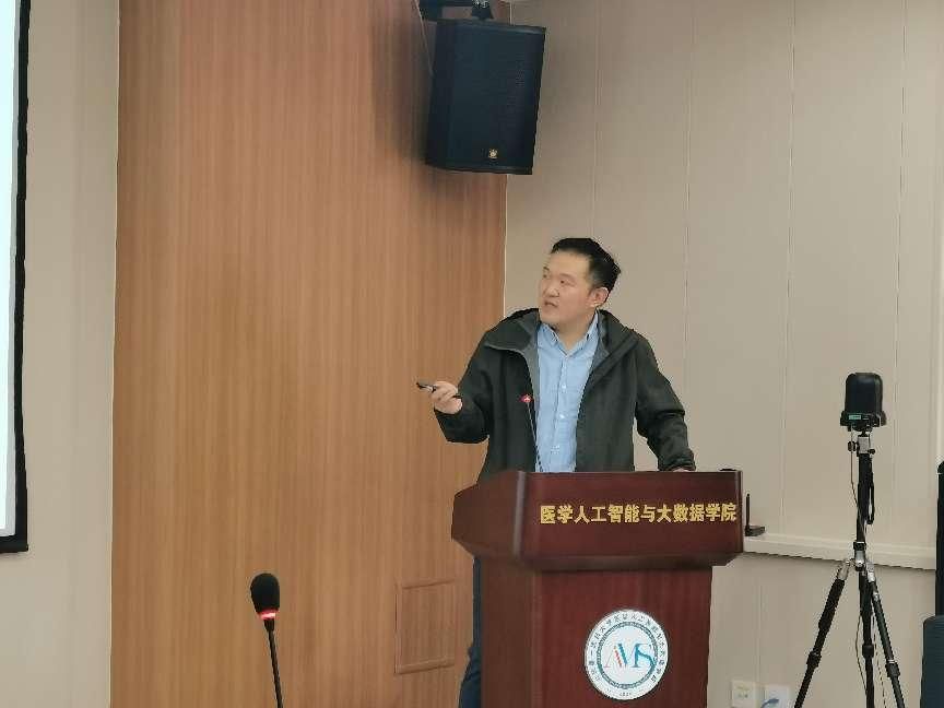 智能学院院长于长斌、副院长刘峰出席活动并发表致辞。于长斌向各位与会专家的到来表示热烈欢迎,详细介绍了学院成立以来在科研团队建设、支持成果转化方面所做的工作及取得的成绩,邀约与会专家一起在医学人工智能与大数据的临床应用研究方面共同努力。