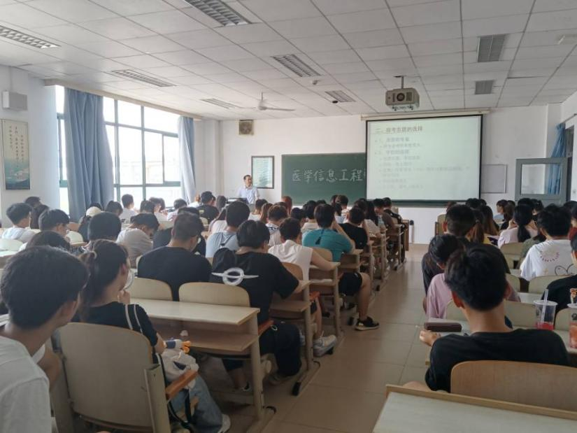 在电子、信息工程和医学信息工程等方向的考研讲座上,陆强老师首先强调了考研的重要性。分析了近五年来考研国家线的趋势,梳理了考研各个科目的范围,还就考研导师的选择给同学们做了清晰的讲解。他强调,考研主要的是择校,要根据自己的实际情况报考。陆老师还给同学们制定了详细的合理的复习计划,如作息时间、科目分配、辅导书选择等等,还结合着自己平时发现的一些问题进行分析和纠正。最后,陆老师与同学们做了学习交流,解答了部分同学的一些疑惑。
