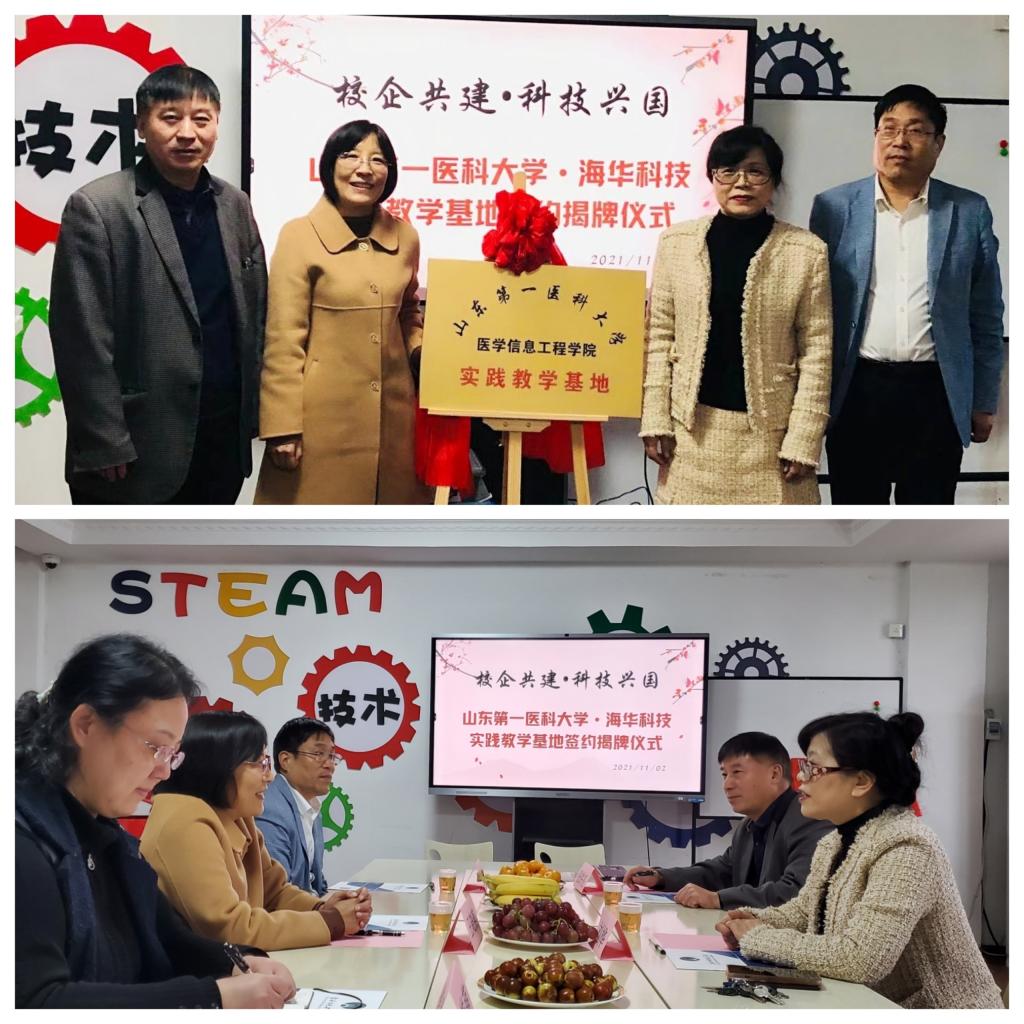 11月2日下午,医学信息工程学院与泰安海华科技开发有限公司实践教学基地签约揭牌仪式揭牌暨合作签约仪式顺利举行。医学信息工程学院院长王晓艳、副院长张西学、海华科技总经理刘桦等出席签约揭牌仪式。
