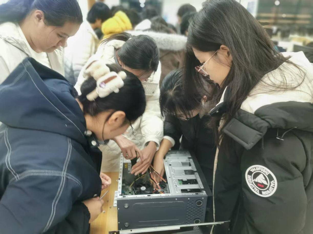 活动旨在强化学生理想信念,提升信息技术实操能力,引导树立正确“三观”。思想引领环节,师生共同观看《信仰的力量》,先辈们的坚守与奉献让学生深受触动,纷纷表示将以信仰为动力,锤炼过硬本领。专业实践中,教师将电脑组装、系统安装、网络调试等技能拆解为模块化教学,学生分组实操、教师巡回指导,在“做中学”中提升实操能力与学习自信。