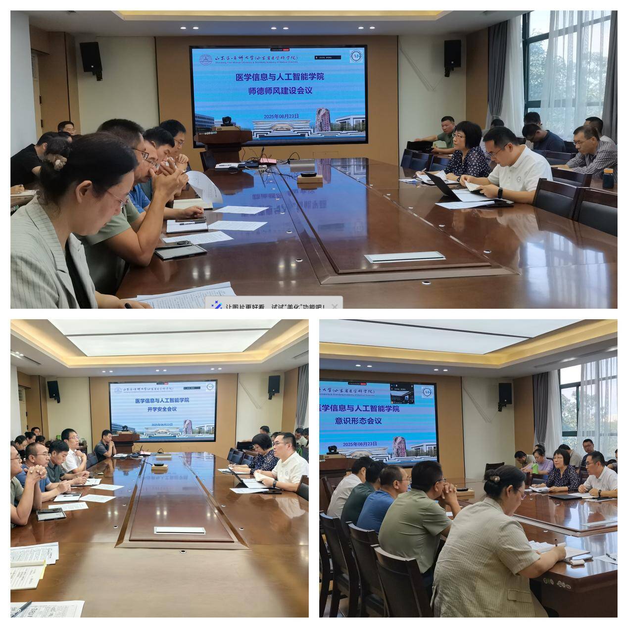 8月23日上午,医学信息与人工智能学院以视频连线形式在济南、泰安两地同步召开2025秋新学期开学全院大会。此次会议紧扣“凝心聚力谋发展,深耕特色创一流”主题,全面总结“十四五”工作、部署新学期任务,为学院高质量发展锚定方向。学院党委书记王晓艳主...