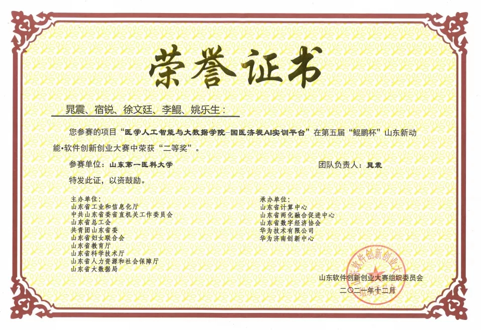 智能学院获第五届“鲲鹏杯”山东新动能·软件创新创业大赛二等奖