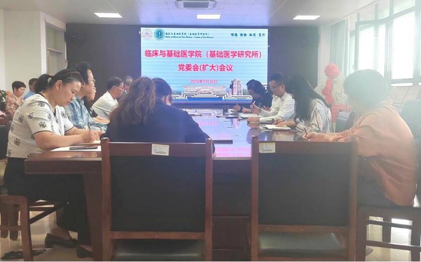 9月30日,临床与基础医学院(所)召开党委会(扩大)会议,党政领导班子成员、科级管理人员、各党支部书记及各学系(教研室)、实验室、平台等主任参加了会议,院(所)党委书记张海东主持会议。
