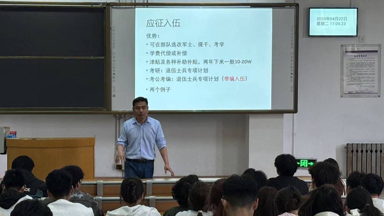 大班会上,曹明亮通过近三年毕业生考研、考公考编、求职就业、参军入伍、参加志愿服务西部计划等不同发展路径的分析,详细解读不同发展方向的趋势特点、适用群体及实现路径,为各年级学生提供科学参考。班会上还共同学习了校(院)《本科生考试工作管理办法》、《学生违纪处理办法》等管理规定,以及涉及考试违纪问题的处分通报。