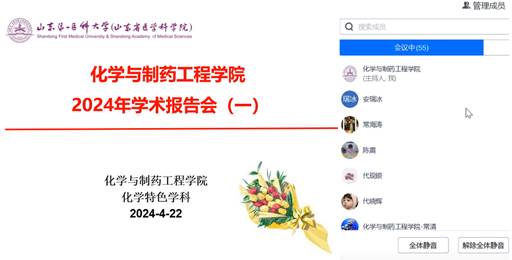 此次学术报告会由学院和化学特色学科共同举办,采用线上和线下结合的方式进行,学院没有上课的老师和研究生50余人参加了活动。后续,学院还将陆续举办多场学术报告会。