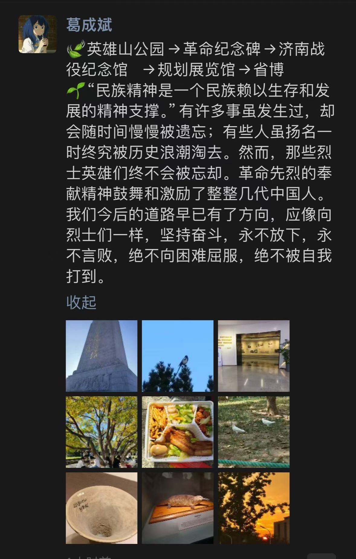 踏入济南市规划馆,同学们了解到了济南的历史和新貌,以及未来在科技、交通、生态等领域的新规划,学习到了革命先锋为城市解放、建设和发展的不懈奋斗、勇于创新的精神,增强了城市建设责任感与使命感。