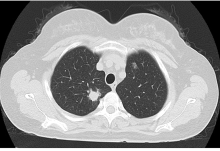 目的探讨肺部转移瘤非典型多层螺旋CT(MSCT)多形性表现与病理结果的相关性。方法收集2012年1月至2019年7月中国人民解放军中部战区总医院和陕西省肿瘤医院168枚肺部转移瘤的MSCT胸部影像学资料,根据病理类型分为转移性腺癌(88枚)及转移性鳞状细胞癌(80枚)。分别观察并记录两组肺部转移瘤非典型MSCT的影像学征象,逐一标记后归类,比较两组非典型MSCT影像特征间的差异,分析转移性腺癌及转移性鳞状细胞癌组内病灶大小与非典型MSCT影像特征的相关性。结果肺部转移性腺癌和转移性鳞状细胞癌毛刺征分别为61枚(69.32%)、28枚(35.00%),组间比较差异有统计学意义(χ2=19.811,P<0.001);胸膜凹陷征分别为48枚(54.55%)、16枚(20.00%),组间比较差异有统计学意义(χ2=21.206,P<0.001);空泡/空洞征分别为10枚(11.36%)、61枚(76.25%),组间比较差异有统计学意义(χ2=72.303,P<0.001);含气支气管征分别为43枚(48.86%)、13枚(16.25%),组间比较差异有统计学意义(χ2=20.057,P<0.001);晕征/磨玻璃影分别为58枚(65.91%)、37枚(46.25%),组间比较差异有统计学意义(χ2=6.591,P=0.010)。Spearman秩相关分析显示,转移性腺癌结节大小与毛刺征、胸膜凹陷征呈正相关(r=0.270,P=0.011;r=0.226,P=0.035);转移性鳞状细胞癌结节大小与非典型MSCT影像特征均无关(均P>0.05)。结论肺部转移性腺癌非典型MSCT多表现为毛刺征、胸膜凹陷征、含气支气管征及晕征/磨玻璃影,转移性鳞状细胞癌多表现为空泡/空洞征。毛刺征、胸膜凹陷征与肺部转移性腺癌结节大小有相关性。