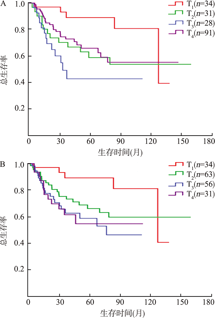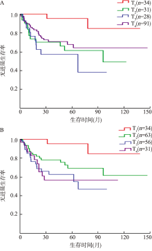 目的比较调强放疗鼻咽癌在国际抗癌联盟(UICC)鼻咽癌第7版(简称UICC 7版)与第8版(简称UICC 8版)T分期的人群分布和预后差异,并分析鼻咽癌患者的预后影响因素。方法回顾性分析2005年6月1日至2017年12月31日山东省潍坊市人民医院放疗科收治的184例初治调强放疗鼻咽癌患者的临床病理资料,按UICC 7版、UICC 8版对入组病例进行重新分期,分析两版分期系统患者T分期的分布,采用Kappa一致性检验比较两种分期的一致性。采用Kaplan-Meier法进行生存分析,log-rank检验比较各T分期之间的预后差异。采用Cox回归模型分析鼻咽癌患者的预后影响因素。结果184例调强放疗鼻咽癌患者按UICC 7版T分期,T1、T2、T3和T4期分别占18.5%(34/184)、16.8%(31/184)、15.2%(28/184)、49.5%(91/184),而按UICC 8版T分期,分别占18.5%(34/184)、34.2%(63/184)、30.4%(56/184)和16.8%(31/184),两版分期系统的T分期人群分布具有中度一致性(Kappa=0.58)。UICC 7版分期中,T1、T2、T3、T4期患者的总生存期(OS)差异有统计学意义(χ2=10.606,P=0.014),T1与T2、T3、T4期患者的OS差异均有统计学意义(χ2=4.866,P=0.027;χ2=11.965,P=0.001;χ2=4.351,P=0.037),T2、T4期OS曲线不能分离,T3、T4期OS曲线倒序分布;UICC 8版分期中,4期患者的OS差异有统计学意义(χ2=8.663,P=0.034),T1与T3、T4期患者的OS差异均有统计学意义(χ2=8.746,P=0.003;χ2=7.580,P=0.006),T1~T4期的OS曲线顺序分布,T3与T4期OS曲线仍未能分离。UICC 7版分期中,T1、T2、T3、T4期患者的无进展生存期(PFS)差异有统计学意义(χ2=11.289,P=0.010),T1与T2、T3、T4期患者的PFS差异均有统计学意义(χ2=8.209,P=0.004;χ2=13.302,P<0.001;χ2=6.550,P=0.010),T2、T4期PFS曲线不能分离,T3、T4期PFS曲线倒序分布;UICC 8版分期中,4期患者的PFS差异有统计学意义(χ2=12.074,P=0.007),T1与T2、T3、T4期患者的PFS差异均有统计学意义(χ2=5.182,P=0.023;χ2=11.217,P=0.001;χ2=10.174,P=0.001),T1~T4期的PFS曲线顺序分布,但T3与T4期PFS曲线未能分离。分别按UICC 7版和8版分期行Cox多因素分析,结果显示两版分期中T分期均是患者OS(P=0.013;P=0.026)、PFS(P=0.031;P=0.012)的独立预后因素,但两版分期中T分期均不是患者无局部复发生存期(LRFS)(P=0.351;P=0.167)、无远处转移生存期(DMFS)(P=0.059;P=0.052)的独立预后因素;两版分期中年龄均是影响OS(HR=2.70,95%CI为1.53~4.76,P=0.001;HR=2.74,95%CI为1.55~4.84,P=0.001)、PFS(HR=2.72,95%CI为1.46~5.08,P=0.002;HR=2.94,95%CI为1.57~5.52,P=0.001)、LRFS(HR=5.87,95%CI为1.62~21.27,P=0.007;HR=6.02,95%CI为1.61~22.49,P=0.008)及DMFS(HR=2.40,95%CI为1.22~4.72,P=0.011;HR=2.63,95%CI为1.34~5.18,P=0.005)的独立预后因素,N分期是影响OS(P=0.031;P=0.028)的独立预后因素。结论UICC 7版与8版分期系统的T分期人群分布具有中等一致性,UICC 8版T分期对OS及PFS的预后判断更有优势,两版分期中T分期均是患者OS、PFS的独立预后因素。
