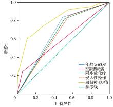 目的探讨原发非小细胞肺癌(NSCLC)患者放疗后肺部侵袭性真菌病(IFD)发生危险因素并构建预测模型。方法回顾性纳入2020年1月至2024年1月于四川省宜宾市第二人民医院接受放疗的298例原发NSCLC患者为研究对象。分析患者放疗后肺部IFD发生情况,对原发NSCLC患者放疗后肺部IFD发生危险因素行单因素及多因素分析,依据多因素分析结果构建logistic预测模型,并通过受试者操作特征(ROC)曲线评估各指标的预测效能。结果298例接受放疗的原发NSCLC患者,61例发生肺部IFD,发生率为20.47%;其中检出真菌73株,包括假丝酵母菌属57株和曲霉菌属16株。IFD患者与非IFD患者年龄(χ2=23.13,P<0.001)、是否合并2型糖尿病(χ2=19.28,P<0.001)、是否接受侵入性操作(χ2=17.49,P<0.001)及同步放化疗(χ2=18.48,P<0.001)差异均有统计学意义。多因素分析显示,年龄≥65岁(OR=4.64,95%CI为2.12~10.13,P<0.001)、合并2型糖尿病(OR=5.63,95%CI为2.19~14.48,P<0.001)、同步放化疗(OR=3.73,95%CI为1.74~8.02,P=0.001)及接受侵入性操作(OR=5.11,95%CI为2.33~11.19,P<0.001)均是原发NSCLC患者放疗后肺部IFD发生的独立危险因素。基于以上指标构建logistic预测模型为logit(P)=-4.59+1.53×年龄+1.73×合并2型糖尿病+1.32×同步放化疗+1.63×接受侵入性操作(R2=0.852)。ROC曲线分析显示,年龄≥65岁、合并2型糖尿病、接受侵入性操作、同步放化疗、回归模型P值预测原发NSCLC患者放疗后肺部IFD发生的曲线下面积分别为0.68、0.63、0.68、0.68、0.82。结论年龄、合并2型糖尿病、接受侵入性操作及同步放化疗均是原发NSCLC患者放疗后肺部IFD发生的独立危险因素,利用以上4个因素构建的预测模型对于患者肺部IFD预测具有良好的效能。