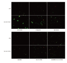 目的 探讨通关藤联合XELOX方案对人结直肠癌HCT116细胞双硫死亡的作用及相关机制。方法 体外培养结直肠癌HCT116细胞,分别用0、0.3、0.6、1.2、2.4、4.8 μg/ml浓度的卡培他滨,0、10、20、40、80、160 μg/ml浓度的奥沙利铂,0、15、30、60、120、240 mg/ml浓度的通关藤,0、4、8、16、32、64 μg/ml浓度的葡萄糖抑制剂BAY-876处理HCT116细胞;以及经25 μg/ml BAY-876预处理后再经以上各药物、各浓度处理HCT116细胞。将HCT116细胞分为阴性对照组(不做任何处理)、卡培他滨组(4.0 μg/ml)、奥沙利铂组(90 μg/ml)、通关藤组(140 mg/ml)、XELOX方案组(4.0 μg/ml卡培他滨+90 μg/ml奥沙利铂)、通关藤联合XELOX方案组(140 mg/ml通关藤+4.0 μg/ml卡培他滨+90 μg/ml奥沙利铂)。BAY-876处理组为以上各组别中,每组加入葡萄糖抑制剂BAY-876 25 μg/ml。采用MTT法检测细胞增殖情况,Annexin Ⅴ-FITC/PI双染法检测细胞凋亡情况,邻甲苯胺法检测葡萄糖浓度,NADPH比色法检测NADPH水平,胱氨酸摄取荧光法检测胱氨酸荧光强度,半胱氨酸比色法检测半胱氨酸含量。结果 经0、0.3、0.6、1.2、2.4、4.8 μg/ml浓度卡培他滨,0、10、20、40、80、160 μg/ml浓度奥沙利铂,0、4、8、16、32、64 μg/ml浓度BAY-876,以及经25 μg/ml葡萄糖抑制剂BAY-876预处理后再经上述各药物、各浓度处理HCT116细胞后,细胞存活率差异均有统计学意义(F=644.60,P<0.001;F=417.30,P<0.001;F=1 028.00,P<0.001;F=1 066.00,P<0.001;F=847.70,P<0.001),且随着各药物浓度增加,HCT116细胞活性均逐渐下降(均P<0.05);经0、15、30、60、120、240 mg/ml浓度通关藤,以及经25 μg/ml葡萄糖抑制剂BAY-876预处理后再经上述浓度药物处理HCT116细胞后,细胞存活率差异均具有统计学意义(F=107.50,P<0.001;F=619.70,P<0.001),且随着药物浓度增加,HCT116细胞活性呈现先上升后下降的趋势(均P<0.05)。Annexin Ⅴ-FITC/PI双染法结果显示,阴性对照组绿色、红色、黄色荧光强度均较弱,各用药组绿色荧光与红色荧光的表达增强,其中卡培他滨组红色荧光、黄色荧光占比较大;奥沙利铂组及通关藤组绿色荧光占比较小;XELOX方案组的绿色荧光和黄色荧光占比多于卡培他滨组及奥沙利铂组;通关藤联合XELOX方案组绿色荧光、红色荧光占比最大。经葡萄糖抑制剂BAY-876预处理后,各组细胞中绿色、黄色荧光均明显增多,其中,卡培他滨组和奥沙利铂组的绿色荧光、黄色荧光明显增多;XELOX方案组的3种荧光明显多于卡培他滨组和奥沙利铂组;通关藤联合XELOX方案组,3种荧光占比最大。阴性对照组、卡培他滨组、奥沙利铂组、通关藤组、XELOX方案组、通关藤联合XELOX方案组以及经葡萄糖抑制剂BAY-876处理HCT116细胞后以上各组的葡萄糖浓度分别为(19.91±0.13)、(22.82±0.88)、(11.87±0.14)、(17.93±0.14)、(10.53±0.10)、(7.56±0.08)μg/ml,(11.44±0.10)、(11.73±0.72)、(8.98±0.40)、(14.25±0.33)、(6.77±1.50)、(1.56±0.17)μg/ml,差异均有统计学意义(F=762.60,P<0.001;F=118.80,P<0.001);与无处理的各组相比,经葡萄糖抑制剂BAY-876处理HCT116细胞后的细胞内葡萄糖浓度均显著降低(t=86.50,P<0.001;t=16.90,P<0.001;t=11.83,P<0.001;t=17.79,P<0.001;t=4.35,P=0.012;t=54.34,P<0.001)。各组NADPH水平分别为(131.80±2.61)、(93.87±1.00)、(136.50±3.69)、(105.70±0.84)、(146.90±2.94)、(105.00±2.25)nmol/gProt,(92.33±0.23)、(88.63±0.31)、(97.33±2.02)、(81.77±1.33)、(102.80±1.61)、(85.13±0.45)nmol/gProt,差异均有统计学意义(F=225.60,P<0.001;F=125.50,P<0.001);与无处理的各组相比,经葡萄糖抑制剂BAY-876处理HCT116细胞后的细胞内NADPH水平均显著降低(t=26.11,P<0.001;t=8.62,P<0.001;t=16.13,P<0.001;t=26.38,P<0.001;t=22.78,P<0.001;t=14.97,P<0.001)。各组胱氨酸荧光强度分别为607.30±8.76、655.70±6.57、647.10±19.35、737.80±6.34、756.00±8.65、846.60±11.70,929.60±6.88、1 049.00±22.35、1 021.00±29.49、1 094.00±16.17、1 137.00±10.08、1 230.00±46.57,差异均有统计学意义(F=188.00,P<0.001;F=48.32,P<0.001);与无处理的各组相比,经葡萄糖抑制剂BAY-876处理HCT116细胞后的细胞内胱氨酸荧光强度均显著升高(t=50.09,P<0.001;t=29.26,P<0.001;t=18.34,P<0.001;t=35.53,P<0.001;t=49.66,P<0.001;t=13.83,P<0.001)。各组半胱氨酸含量分别为(457.00±30.69)、(581.20±30.69)、(326.40±5.49)、(374.20±5.54)、(565.30±5.54)、(246.80±30.69)μmol/L,(100.30±16.57)、(472.90±19.10)、(262.70±28.65)、(348.70±9.55)、(533.40±11.03)、(30.23±5.49)μmol/L,差异均有统计学意义(F=110.00,P<0.001;F=423.50,P<0.001);与无处理的各组相比,经葡萄糖抑制剂BAY-876处理HCT116细胞后的细胞内半胱氨酸含量均显著降低(t=17.71,P<0.001;t=5.19,P=0.006;t=3.78,P=0.019;t=4.00,P=0.016;t=4.47,P=0.011;t=12.03,P<0.001)。结论 通关藤联合XELOX方案可通过双硫死亡程序促进人结直肠癌HCT116细胞的死亡。