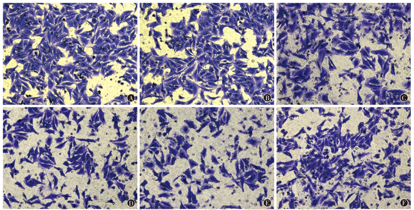 目的探究二甲双胍通过调控ALKBH3的表达对食管鳞状细胞癌细胞生长、迁移和血管生成的影响。方法使用不同浓度(0、0.5、1.0、2.0、4.0、8.0 mmol/L)的二甲双胍处理人食管癌TE-1细胞,将TE-1细胞分为空白对照组,二甲双胍低(0.5 mmol/L)、中(1.0 mmol/L)、高(2.0 mmol/L)浓度组,二甲双胍(2.0 mmol/L)+pcDNA-NC组,二甲双胍(2.0 mmol/L)+pcDNA-ALKBH3组。采用CCK-8法测定细胞活力,克隆形成实验检测细胞增殖能力,Transwell实验检测细胞迁移和侵袭能力,流式细胞术检测细胞凋亡能力,血管形成实验检测细胞管状结构形成情况。用4~6周龄雄性BALB/c无胸腺裸鼠构建异体移植瘤模型,采用随机数字表法分为模型对照组、二甲双胍组、二甲双胍+pcDNA-NC组和二甲双胍+pcDNA-ALKBH3组,每组6只,测定瘤体体积并称重,采用蛋白质印迹法检测凋亡相关蛋白Bcl-2、Bax及ALKBH3、血管内皮生长因子A(VEGF-A)蛋白表达水平,免疫组织化学检测CD31蛋白表达。结果使用0、0.5、1.0、2.0、4.0、8.0 mmol/L二甲双胍处理TE-1细胞48 h后,细胞活力分别为(100.00±0.00)%、(90.31±5.23)%、(81.25±8.65)%、(63.52±6.80)%、(54.64±5.35)%、(31.48±4.21)%,差异有统计学意义(F=98.11,P<0.001);0.5、1.0、2.0、4.0、8.0 mmol/L与0 mmol/L处理组间细胞活力差异均有统计学意义(均P<0.05)。二甲双胍对TE-1细胞的IC50为4.46 mmol/L。空白对照组,二甲双胍低、中、高浓度组,二甲双胍+pcDNA-NC组,二甲双胍+pcDNA-ALKBH3组TE-1细胞克隆形成数目分别为(153.15±13.55)、(134.80±11.62)、(116.24±10.43)、(93.17±8.85)、(89.39±8.46)、(110.26±7.21)个,差异有统计学意义(F=34.28,P<0.001);二甲双胍不同浓度组TE-1细胞克隆形成数随二甲双胍处理浓度增加明显减少(均P<0.05);与二甲双胍+ pcDNA-NC组相比,二甲双胍+pcDNA-ALKBH3组细胞克隆形成数增加(P<0.05)。6组TE-1细胞迁移数目分别为(152.13±13.40)、(133.85±10.72)、(115.28±8.64)、(91.16±7.89)、(85.39±7.23)、(116.85±8.36)个,细胞侵袭数目分别为(135.22±10.77)、(112.07±9.53)、(86.30±7.45)、(69.53±6.74)、(65.81±5.65)、(79.80±6.32)个,差异均有统计学意义(F=41.35,P<0.001;F=69.06,P<0.001);二甲双胍不同浓度组细胞迁移数目和侵袭数目均随二甲双胍处理浓度增加明显减少(均P<0.05);与二甲双胍+pcDNA-NC组相比,二甲双胍+ pcDNA-ALKBH3组细胞迁移数目和侵袭数目均显著增加(均P<0.05)。6组TE-1细胞凋亡率分别为(3.22±1.13)%、(13.82±1.90)%、(22.67±2.53)%、(29.18±3.24)%、(26.84±2.75)%、(16.36±1.63)%,差异有统计学意义(F=103.66,P<0.001);二甲双胍不同浓度组细胞凋亡率随二甲双胍处理浓度增加逐渐增高(均P<0.05);与二甲双胍+pcDNA-NC相比,二甲双胍+pcDNA-ALKBH3组细胞凋亡率较低(P<0.05)。空白对照组细胞管状结构完整,二甲双胍低、中、高浓度组细胞管状结构存在不同程度损坏,二甲双胍+ pcDNA-ALKBH3组细胞管状结构受损程度较低。6组TE-1细胞管状结构数目分别为(38.35±3.20)、(27.15±2.64)、(15.92±3.14)、(7.39±1.50)、(8.61±1.37)、(29.33±4.20)个,差异有统计学意义(F=113.92,P<0.001);与空白对照组相比,二甲双胍低、中、高浓度组细胞管状结构数目逐渐减少(均P<0.05);二甲双胍+ pcDNA-ALKBH3组细胞管状结构数目多于二甲双胍+pcDNA-NC组(P<0.05)。6组TE-1细胞Bcl-2、Bax、ALKBH3和VEGF-A蛋白表达水平差异均有统计学意义(F=56.36,P<0.001;F=57.26,P<0.001;F=159.30,P<0.001;F=132.89,P<0.001);与空白对照组相比,二甲双胍不同浓度组Bcl-2、ALKBH3和VEGF-A蛋白表达均较低,Bax蛋白表达水平均较高(均P<0.05);与二甲双胍+pcDNA-NC相比,二甲双胍+pcDNA-ALKBH3组Bcl-2、ALKBH3和VEGF-A蛋白表达水平均较高,Bax表达水平均较低(均P<0.05)。模型对照组、二甲双胍组、二甲双胍+pcDNA-NC组和二甲双胍+pcDNA-ALKBH3组裸鼠移植瘤肿瘤质量分别为(1.16±0.12)、(0.46±0.05)、(0.50±0.06)、(1.19±0.14)g,肿瘤体积分别为(878.36±108.93)、(413.59±50.23)、(439.78±51.39)、(793.75±96.98)mm3,差异均有统计学意义(F=96.61,P<0.001;F=51.90,P<0.001);二甲双胍组较模型对照组肿瘤质量降低、体积减小(均P<0.05);二甲双胍+pcDNA-ALKBH3组较二甲双胍组和二甲双胍+pcDNA-NC组肿瘤质量升高、体积增大(均P<0.05)。CD31主要分布在肿瘤细胞质内和细胞膜上。4组移植瘤组织CD31阳性率和VEGF-A蛋白表达水平差异均有统计学意义(F=7.12,P=0.002;F=48.81,P<0.001);二甲双胍组CD31阳性率和VEGF-A蛋白表达水平均低于模型对照组,二甲双胍+ pcDNA-ALKBH3组中CD31阳性率和VEGF-A蛋白表达水平高于二甲双胍组和二甲双胍+pcDNA-NC组(均P<0.05)。结论二甲双胍可通过降低ALKBH3的表达抑制食管鳞状细胞癌细胞增殖、迁移和肿瘤血管生成。