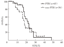 目的探索无症状转移性结直肠癌(mCRC)原发灶切除获益的人群。方法回顾性分析2014年1月至2019年1月长江大学附属第一医院收治的121例肝转移灶不可切除的无症状mCRC患者的临床病理资料。采用Kaplan-Meier法绘制生存曲线,并行log-rank检验。采用Cox回归模型分析患者的预后影响因素。结果121例mCRC患者中位总生存期(OS)为20个月,3年、5年OS率分别为34.71%、10.74%。原发灶切除与未切除患者的中位OS分别为21个月和18个月,差异无统计学意义(χ2=0.79,P=0.375)。65例接受靶向治疗的mCRC患者中,原发灶切除与未切除患者的中位OS分别为25个月和28个月,差异无统计学意义(χ2=1.65,P=0.199)。84例左半结肠、直肠mCRC患者中,原发灶切除与未切除患者的中位OS分别为24个月和18个月,差异有统计学意义(χ2=4.25,P=0.039)。37例右半结肠mCRC患者中,原发灶切除与未切除患者的中位OS分别为19个月和17个月,差异无统计学意义(χ2=0.18,P=0.675)。64例接受肝转移灶局部治疗的mCRC患者中,原发灶切除与未切除患者的中位OS分别为36个月和17个月,差异有统计学意义(χ2=12.60,P<0.001)。57例未接受肝转移灶局部治疗的mCRC患者中,原发灶切除与未切除患者的中位OS分别为15个月和17个月,差异无统计学意义(χ2=0.58,P=0.445)。单因素分析显示,原发灶部位(HR=0.51,95%CI为0.25~0.76,P=0.025)、分化程度(HR=1.46,95%CI为1.13~9.45,P=0.004)、肝转移灶最大直径(HR=1.86,95%CI为1.35~4.60,P=0.012)、血清癌胚抗原(HR=3.55,95%CI为2.55~8.45,P<0.001)、肝转移灶局部治疗(HR=0.35,95%CI为0.19~0.93,P<0.001)是肝转移灶不可切除的无症状mCRC患者OS的影响因素。多因素分析显示,原发灶部位为左半结肠、直肠(HR=0.43,95%CI为0.25~0.93,P=0.039)、接受肝转移灶局部治疗(HR=0.78,95%CI为0.27~0.86,P<0.001)是肝转移灶不可切除的无症状mCRC患者OS的独立影响因素。结论原发灶部位为左半结肠、直肠和接受肝转移灶局部治疗是肝转移灶不可切除的无症状mCRC接受原发灶切除获益的人群。