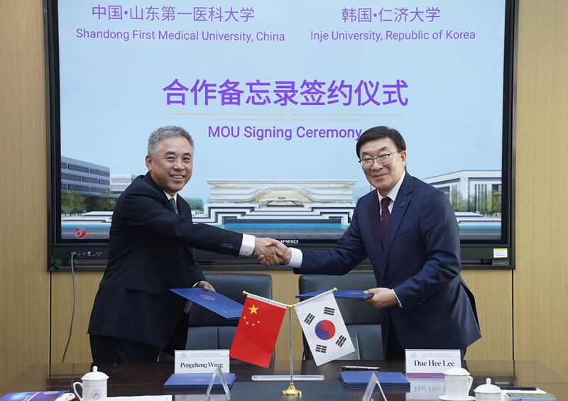 随后,王鹏程和李大熙代表双方签署校际合作备忘录。医学人工智能与大数据学院与仁济大学人工智能融合学院、数字抗衰老保健研究所签署了学院合作备忘录。双方就医学人才培养模式、学生长短期交流项目、科研合作等进行了交流洽谈。