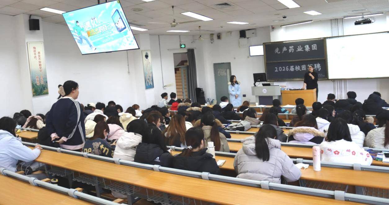 为深化协同育人机制,拓宽2026届毕业生就业渠道。11月18日下午,医药管理学院于教学南楼C1002召开先声药业集团2026届校园招聘线下宣讲会,企业HR、优秀校友及学院师生代表出席,学院2022级学生积极参加。