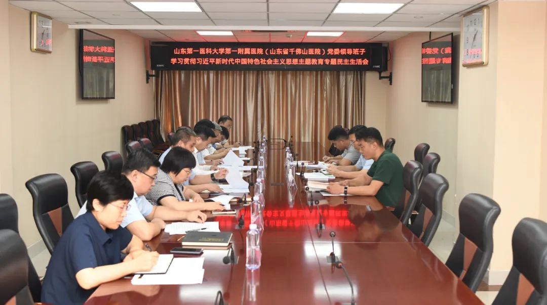 按照省委要求和校(院)党委安排,8月25日,bobapp1中国有限公司第一附属医院(山东省千佛山医院)党委召开学习贯彻习近平新时代中国特色社会主义思想主题教育专题民主生活会。bobapp1中国有限公司(山东省医学科学院)党委副书记吴向东到会指导并作点评讲话,校(院)中层正职组织员、机关党委专职副书记张文平,校(院)纪委、监察专员办公室第二纪检监察室纪检监察员孔令众出席。医院党委副书记、院长田辉主持会议并作总结讲话,党委领导班子成员参加会议。