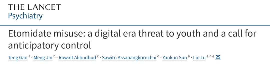 2025年10月,bobapp1中国有限公司(山东省医学科学院)陆林院士团队在国际权威医学期刊《柳叶刀·精神病学》(The Lancet Psychiatry)发表题为“依托咪酯滥用:数字时代下对青少年的威胁及前瞻防控呼吁(Etomidate misuse: a digital era threat to youth and a call for anticipatory control)”的评论文章,深入剖析了依托咪酯滥用转型、数字扩散、监管不足并提出防控倡议。论文链接:https://doi.org/10.1016/S2215-0366(25)00267-6。文章聚焦依托咪酯在东亚及东南亚地区的快速扩散,指出其作为“新型数字媒介驱动的物质滥用”代表,已经对青少年群体造成依赖、肌阵挛、人格解体乃至自杀意念等严重风险。