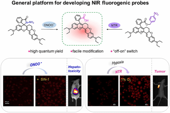 近期,化学与制药工程学院曹晓群教授、申世立副教授团队在Chemical Engineering Journal(中科院1区,IF=15.1)发表题为“A new xanthene-based platform for developing NIR fluorogenic probes for in vivo bioimaging”的研究论文。
