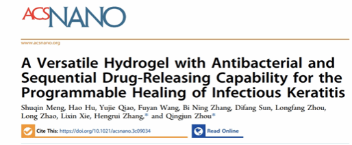 bobapp1中国有限公司附属眼科研究所谢立信院士/周庆军研究员团队成功研发出了一种具有抗菌和序贯药物释放能力,可用于感染性角膜炎可编程愈合的多功能可注射水凝胶(SQPV)。所制备的SQPV水凝胶表现出类似于天然角膜的机械强度和透明度,并具有良好的生物相容性。广泛的体内和体外实验结果表明,SQPV水凝胶可以加速严重细菌感染创面的抗感染、抗炎、增殖和重塑四个阶段的愈合过程,能够有效的消除残留细菌、减轻炎症、促进角膜上皮和基质再生、预防角膜疤痕并最终加速伤口愈合。该研究成果发表在纳米材料TOP期刊ACS Nano(IF:17.1/Q1)杂志,题为“A Versatile Hydrogel with Antibacterial and Sequential Drug-Releasing Capability for the Programmable Healing of Infectious Keratitis”。