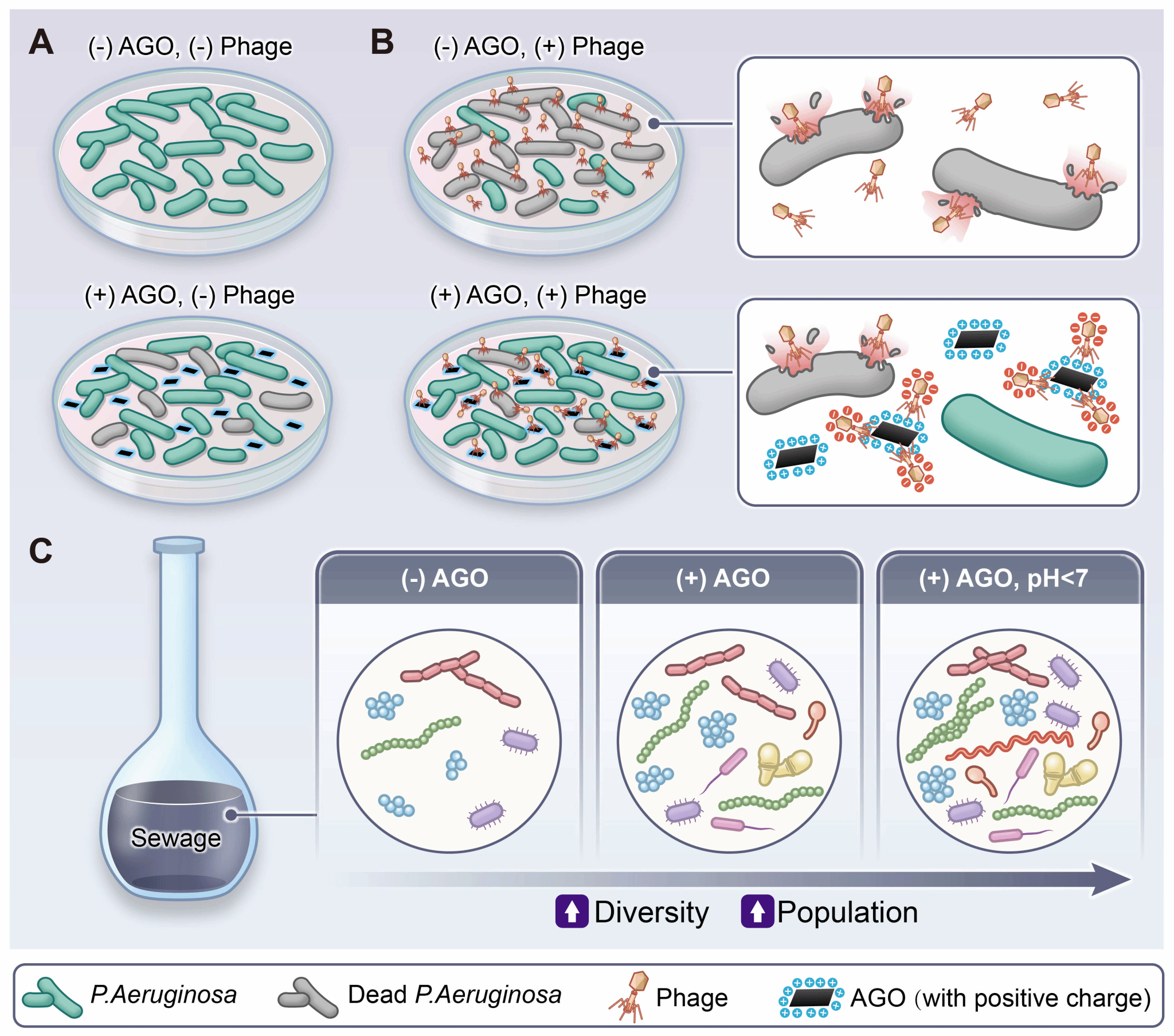 图1氨基化氧化石墨烯(AGO)影响细菌/噬菌体互作示意图