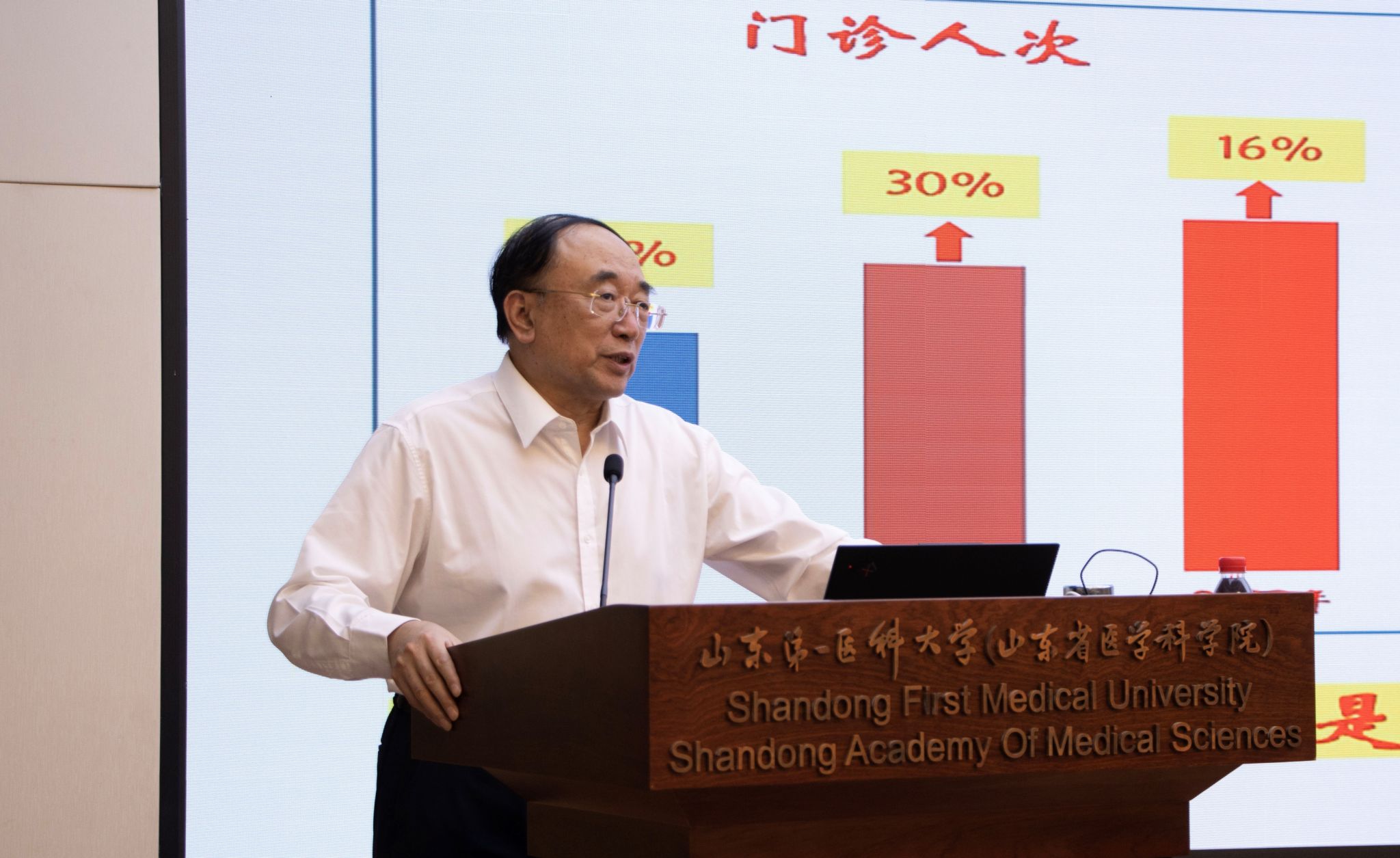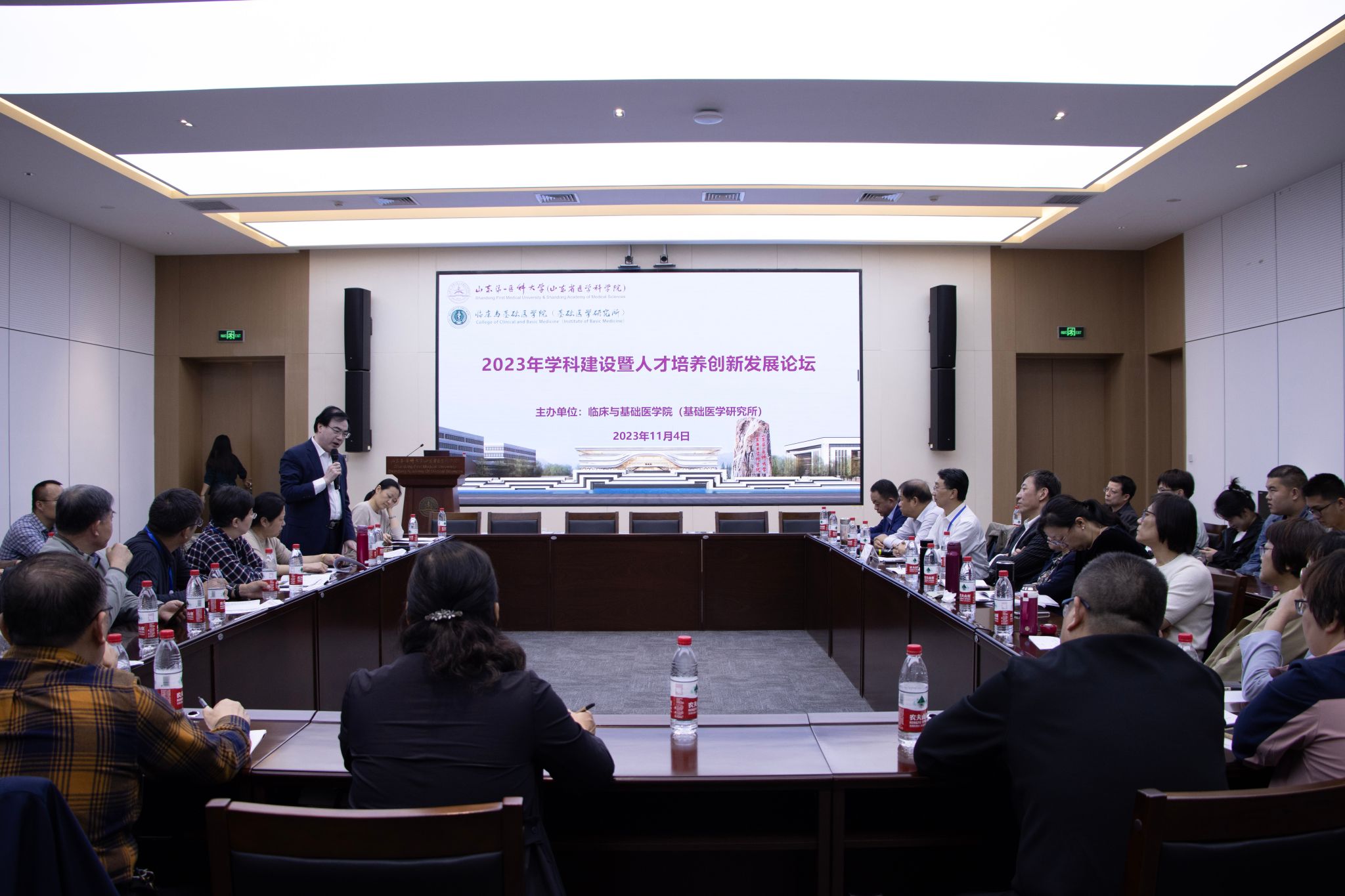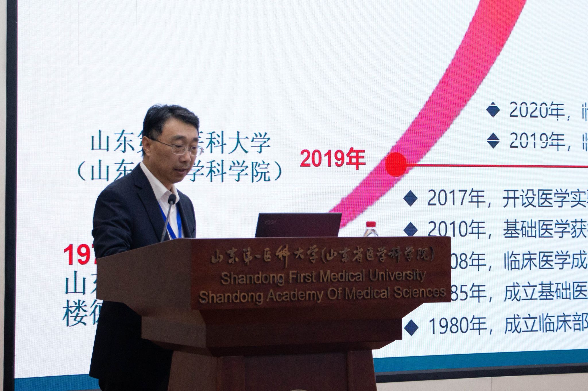 韩金祥在致辞中对论坛的举办表示衷心地祝贺,向专家们的到来表示热烈的欢迎。他简要介绍了校(院)的基本情况,指出,举办本次论坛是校(院)深入贯彻落实国家和山东省关于医学教育改革和发展的重要指示精神,推动医学学科内涵式发展,提升医学人才培养质量,促进临床医学与基础医学深度融合的一项重要举措。希望通过本次论坛,找准定位,明确方向,明晰任务,激发动力,推动校(院)基础与临床的协同创新,为医学事业的发展作出更大的贡献。