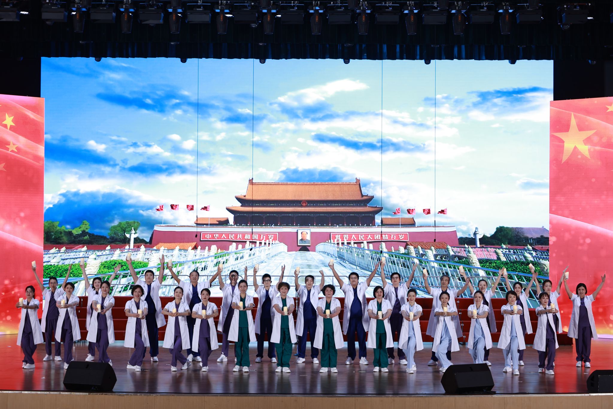 刘思金在致辞中表示,我们齐聚一堂,举办庆祝新中国成立75周年合唱展演活动,目的是以歌声抒发我们爱党爱国爱社会主义的无限热情,展示新时代山一大人爱国奉献、团结奋斗、追求卓越、自强不息的良好精神风貌,进一步汇聚开拓奋进、攻坚克难、争创一流的强大力量。他指出,今年是新中国成立75周年,也是校(院)整合组建以来第二个五年的开局之年。科教融合五年来,校(院)坚持统筹推进教育、科技、人才一体化发展取得显著成就,每一项成绩的取得,都是教学、科研、医疗、防治、管理战线上每位山一大人奋勇拼搏、挥洒汗水、聚沙成塔的结果。