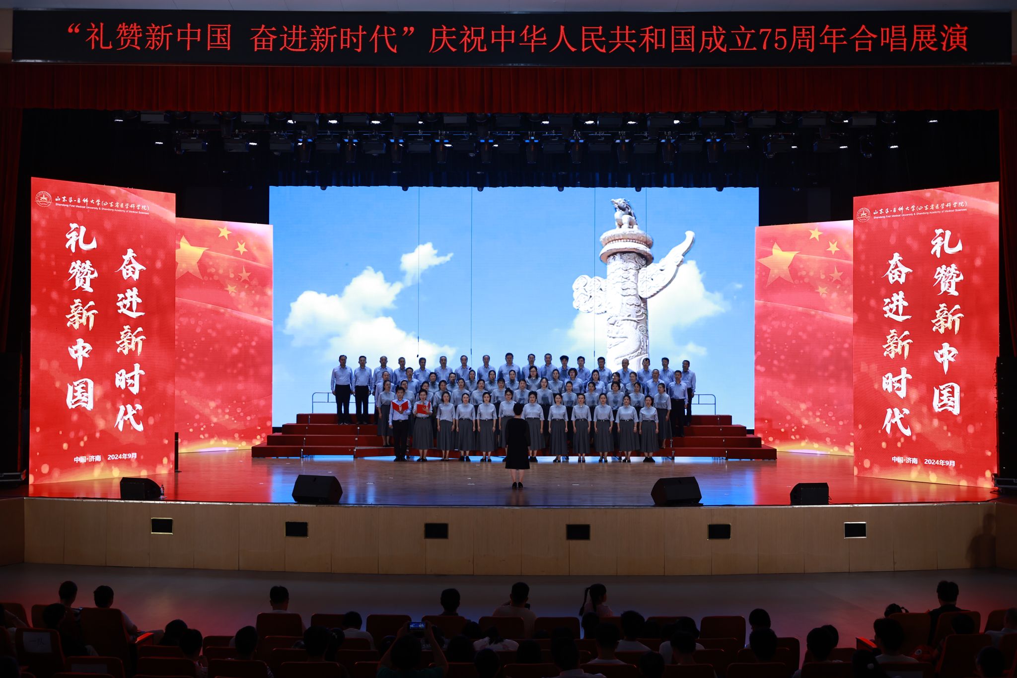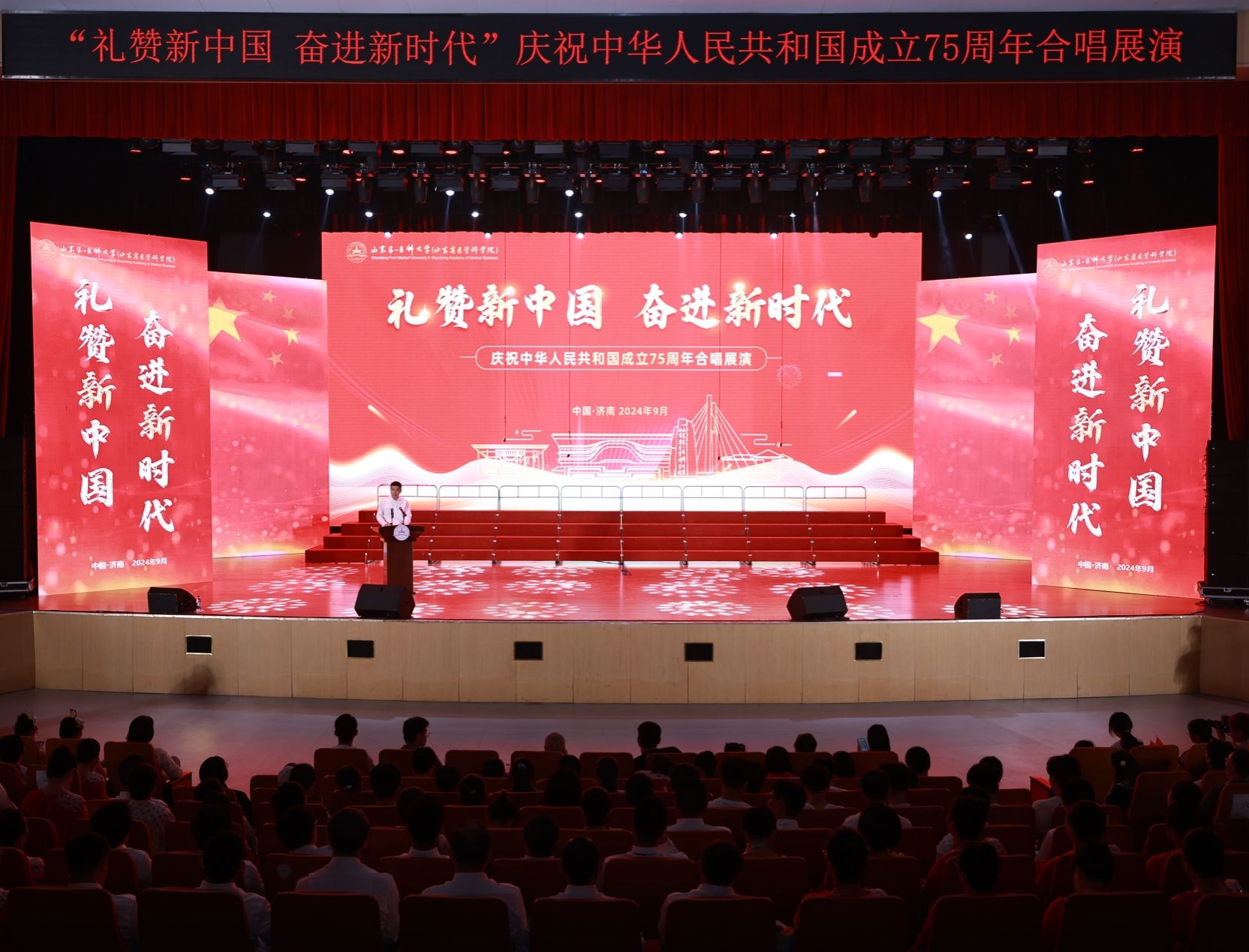 9月28日,“礼赞新中国 奋进新时代”庆祝中华人民共和国成立75周年合唱展演活动在济南校区大学生活动中心举行,来自校(院)各学院、各部门和各直属机构的20支代表队1500余名职工同台演出,用嘹亮的歌声歌唱祖国,热情讴歌新中国成立75年来取得的伟大成就。校(院)党委书记刘思金出席活动并致辞。校(院)领导路绪剑、刘传勇、王宇轩、马鲁豫出席。