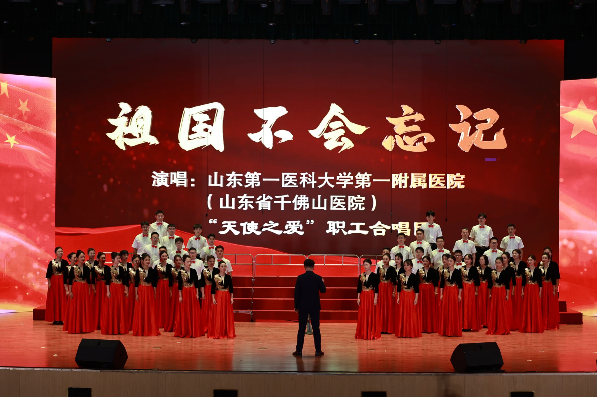 本次合唱展演是校(院)庆祝新中国成立75周年系列活动之一。整场展演精彩纷呈、高潮迭起,由附属省立医院(山东省立医院)、第一附属医院(山东省千佛山医院)、第二附属医院、附属肿瘤医院(山东省肿瘤医院)等11个直属单位,预防医学科学学院(放射医学研究所)、临床与基础医学院(基础医学研究所)等21个教学机构以及校(院)机关分会带来的《我爱你中国》《祖国不会忘记》《今天是你的生日》《共筑中国梦》《红旗飘飘》《歌唱祖国》等歌曲紧扣时代脉搏,以饱满的热情、精湛的演唱技巧和精美的舞蹈编排,将歌曲中的情感演绎得动人心弦。全体参演队员通过对歌曲的理解和诠释,把对党的忠诚、对国家的热爱、对人民的深情充分地展现出来,唤起了人们内心对祖国的热爱与自豪之情,唱响了广大教职医护员工爱党爱国爱社会主义的主旋律,展现出了山一大人团结奋进的良好精神面貌,整个展演现场气氛热烈、气势磅礴、昂扬向上,催人奋进。