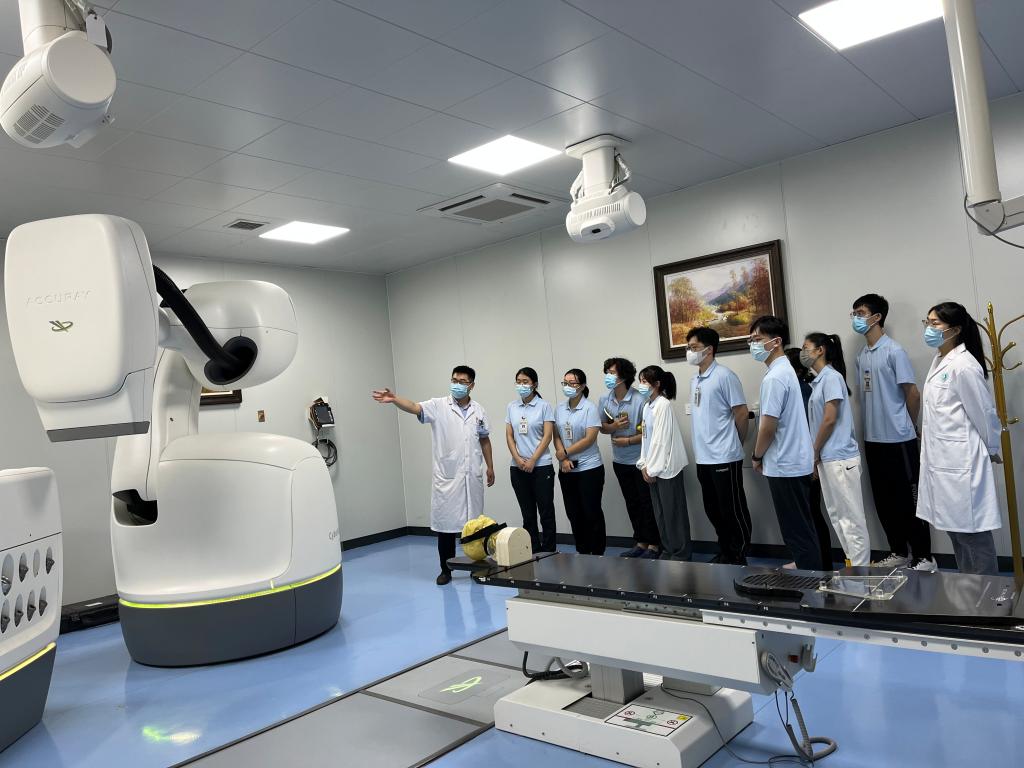 11日上午,学员们以学术讲座、现场观摩的形式了解附属肿瘤医院国际领先的肿瘤放射治疗设备。岳金波教授、尹勇教授作主题报告,对放射治疗的发展变革、放射物理学科的新进展及放疗设备的升级换代进行了系统阐述。随后,朱健教授带领学员们参观了山东省质子中心,详细讲解了质子建设历程、质子治疗的原理和先进性等。