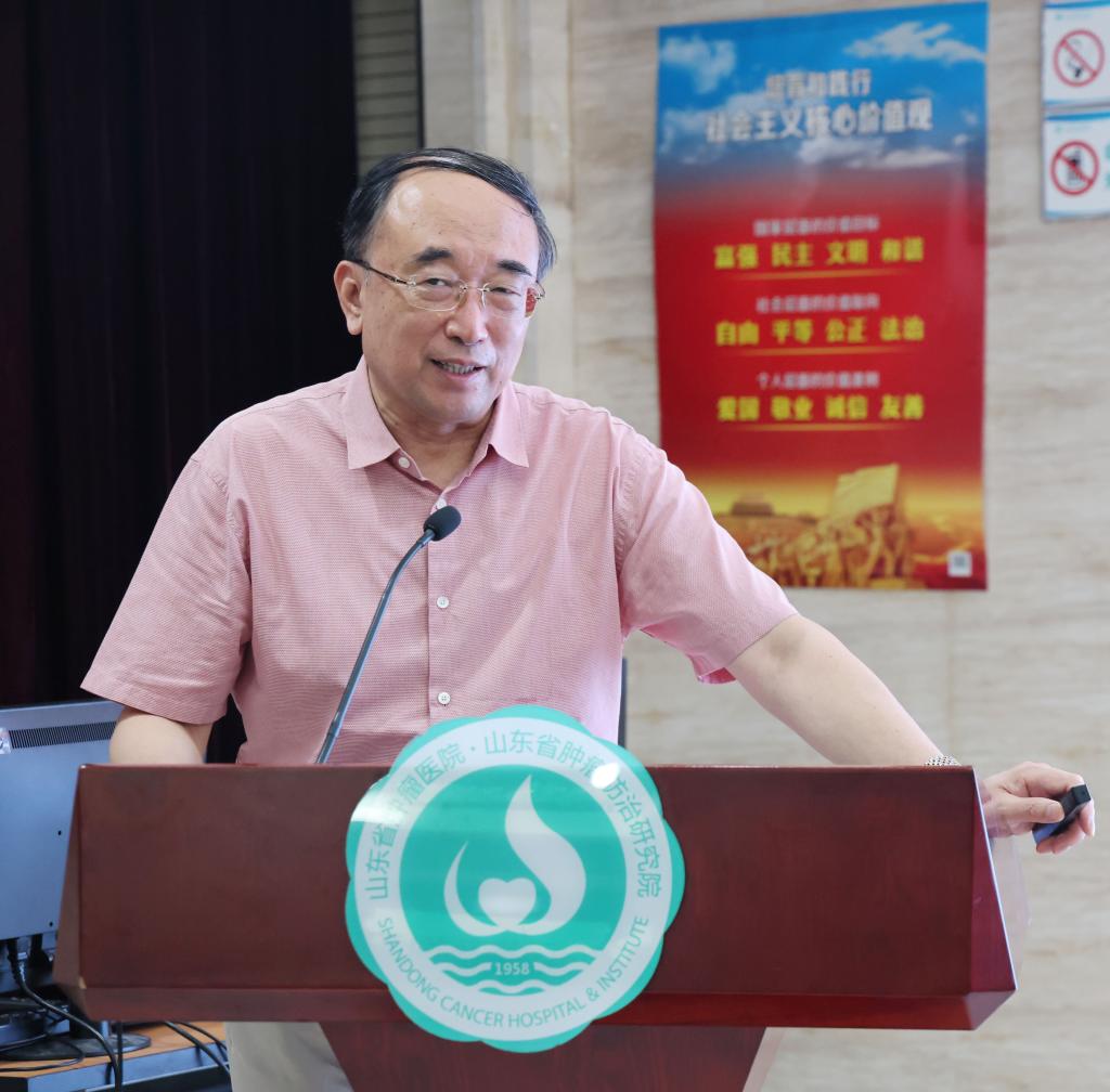 开营仪式于8月10日上午举行,中国工程院院士、附属肿瘤医院院长于金明、院领导班子部分成员、部分博硕士生导师和夏令营营员共40余人参加,仪式由院长助理邢力刚主持。于金明院士首先代表医院向来自全国各高校的入营学员表示热烈欢迎,随后以“青年人才成长攻略”为主题进行了专题报告。于金明院士在报告中介绍了医院的历史渊源和发展现状,梳理了医院发展与人才培养、科技创新之间的联系脉络,于院士强调“英雄不问出身”,鼓励大学生们用今天的自己去更新昨天的自己,把不可能变为可能,实现全方位的创新与自我突破。最后,于金明院士表示,希望本次夏令营活动能增加学员们对山肿的了解,并欢迎学员们在未来能以各种方式加入山肿团队。