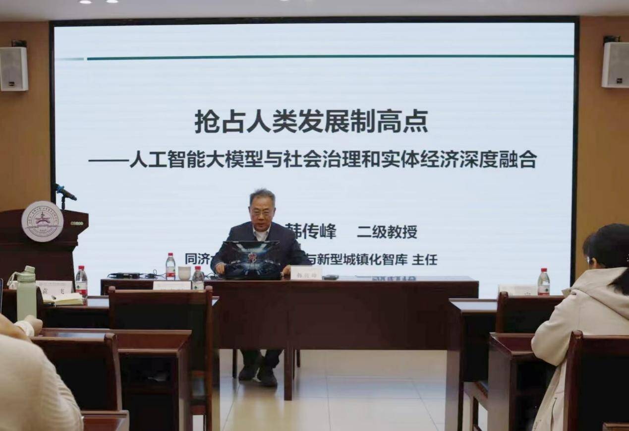 为拓宽师生学术视野、追踪学科前沿,11月10日,“公共管理名家讲坛”在教学南楼A2015大会议室举办。特邀同济大学韩传峰教授,围绕“抢占人类发展制高点:人工智能大模型与社会治理和实体经济深度融合”主题展开分享。本次讲坛由校(院)教师教学发展中心(医学教育研究发展中心)主任、副院长(主持行政工作)钟宁主持,科研办主任王燕、公共管理系主任袁飞及相关专业师生参与该学术活动。