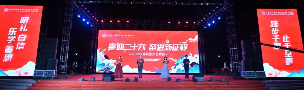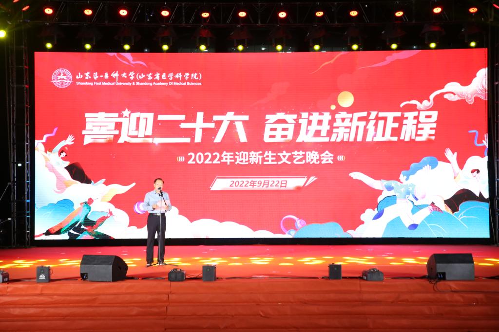 喜迎二十大,奋进新征程。校(院)2022年迎新生文艺晚会分别于9月22日、9月23日在泰安长城路校区和济南主校区举办,校(院)党委委员、副校(院)长李栋出席晚会并致辞。