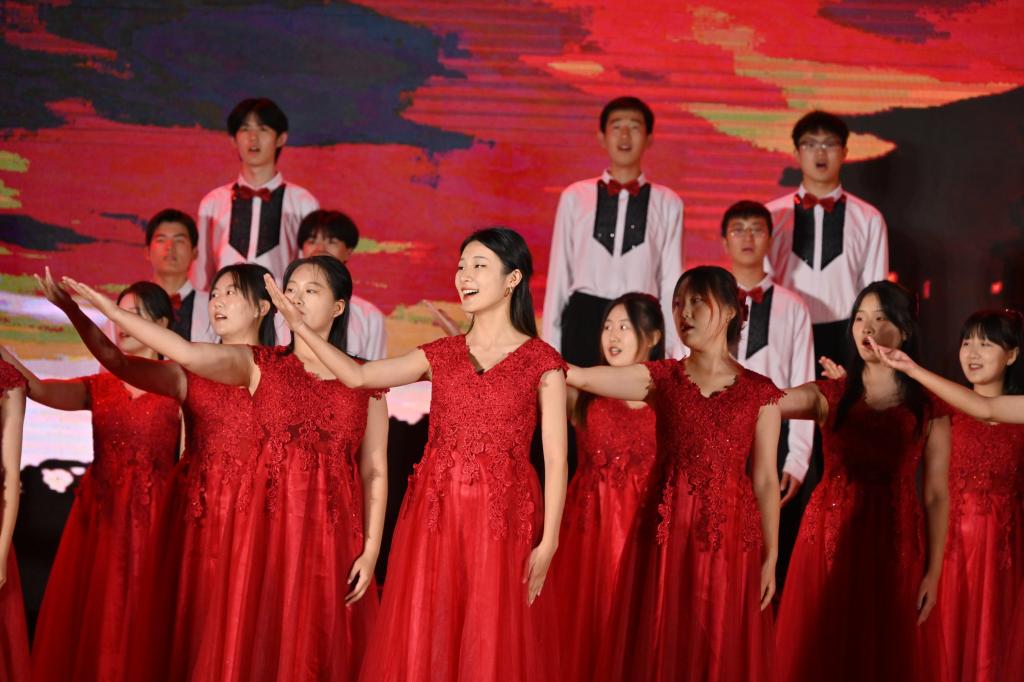 第三篇章以“向未来·弦歌不辍”为主题。诗朗诵《山一大之路》,带领我们一同重温山一大走过的高质量发展道路,在回顾中坚守,在展望中前行;合唱《灯火里的中国》,将现代中国的美好画卷徐徐展开,用歌声描绘出万家灯火的温暖与祥和;武术表演《武动青春》,炫出山一大青年无限的青春活力。晚会在师生共同演绎的《爱在山一大,一起向未来》的歌声中落下帷幕。乘势聚力向高峰,事业有基看未来。前进的巨轮已经奋力起航,让我们乘着党的二十大的春风,共同吹响向“双一流”大学进军的号角。