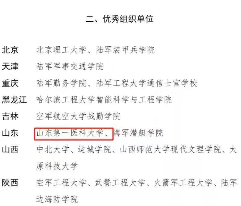 12月8日,“墨子杯”第六届全国兵棋推演大赛总决赛成绩公布,校(院)荣获大赛“优秀组织奖”,是山东赛区唯一获此殊荣的非军事类高校。校(院)2021级医学影像学本科1班张宝建同学和2021级医学信息工程本科2班曾嘉骅同学组成的代表队在近万名参赛选手中脱颖而出获得三等奖,取得山东省非军事类院校最好成绩,王玉鹏、安文两名老师分别获得优秀指导教师和优秀裁判。