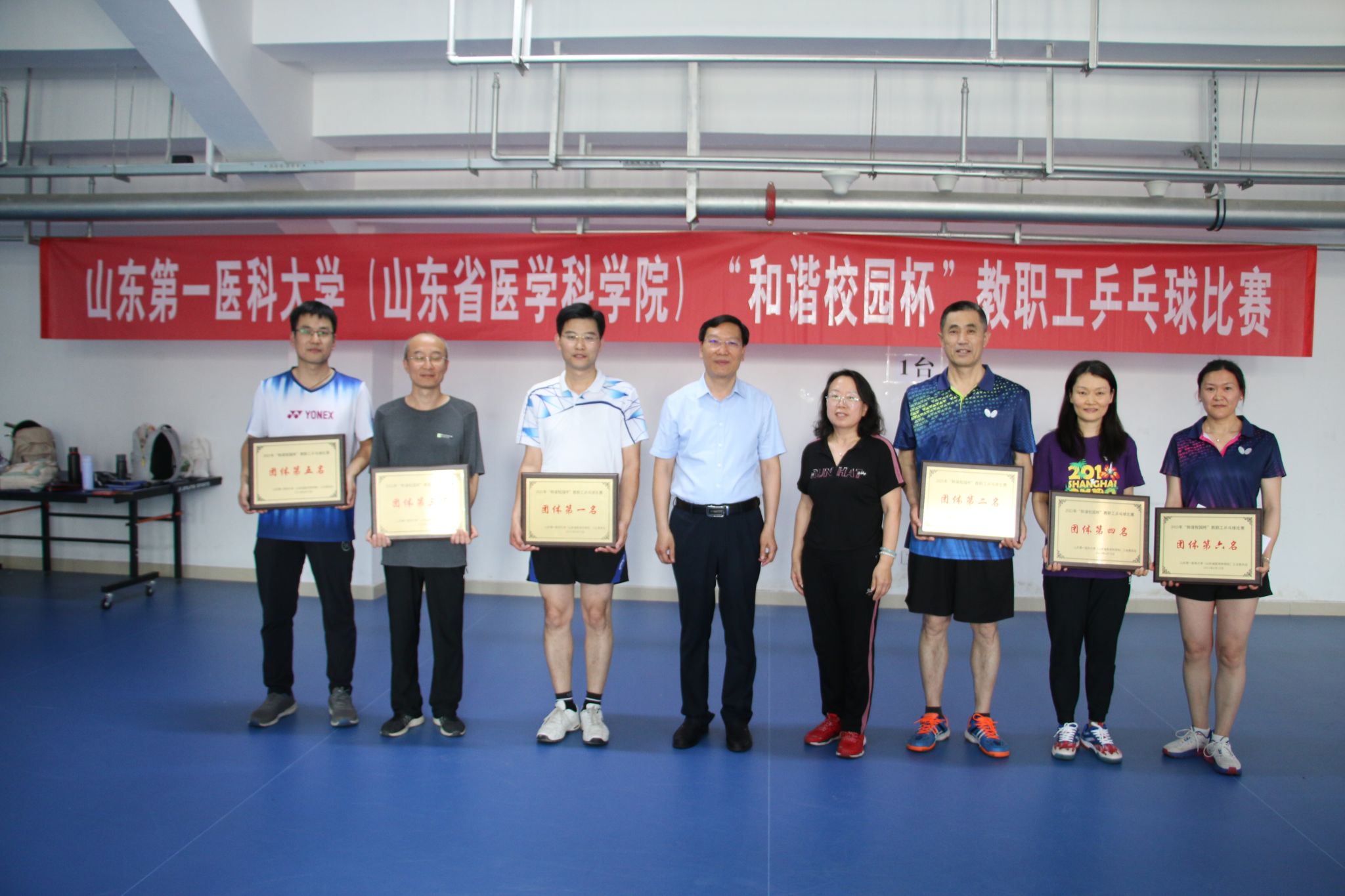 6月15日,由校(院)工会、通识教育部主办,教职工乒乓球协会承办的2023年“和谐校园杯”教职工乒乓球比赛在济南主校区乒乓球馆顺利结束。校(院)党委副书记吴向东观看了比赛,并为获奖选手颁奖。