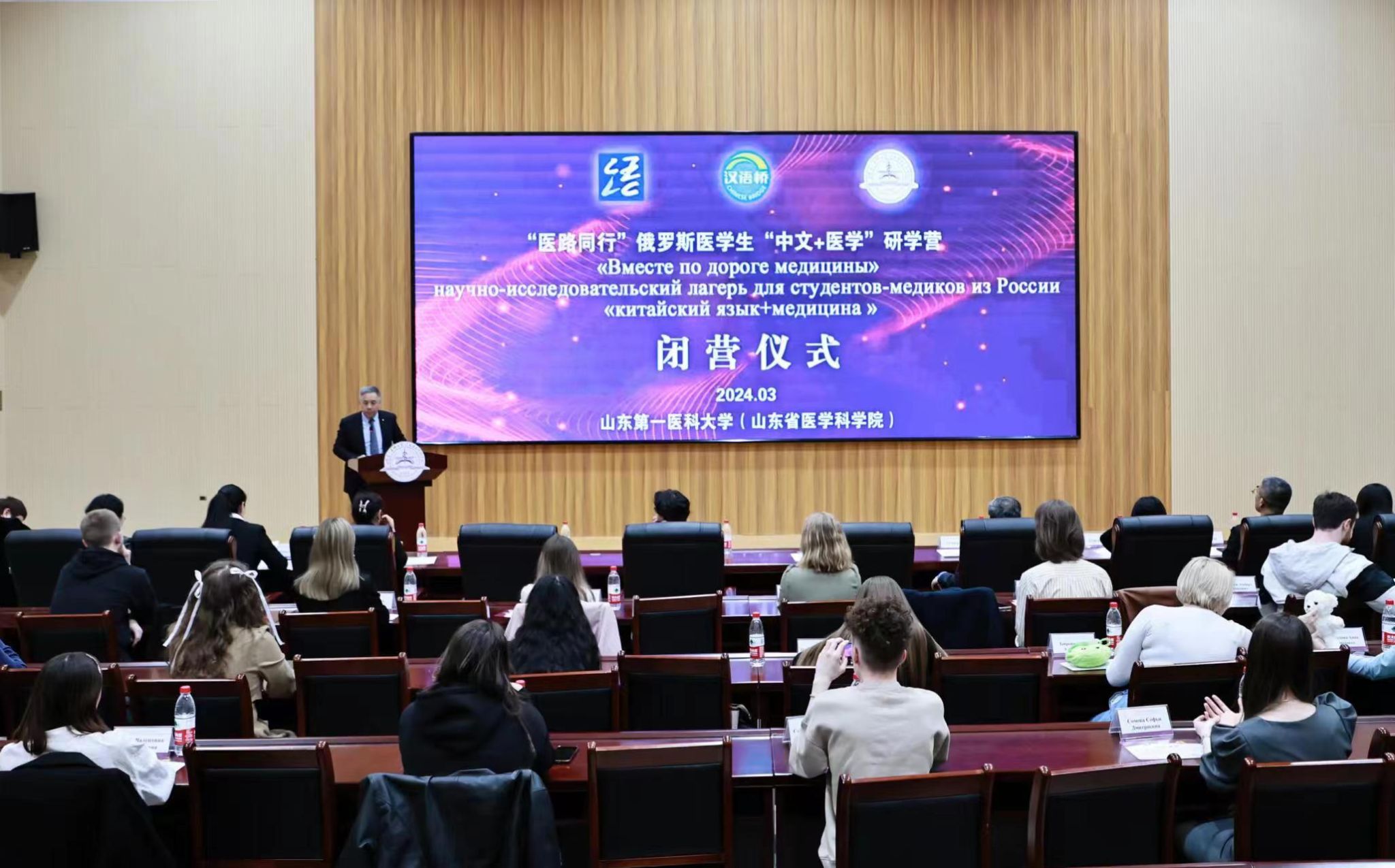 3月17日,由教育部中外语言交流合作中心主办,校(院)承办的2024年教育部“汉语桥”来华团组项目“医路同行”俄罗斯医学生“中文+医学”研学营闭营仪式在泰安校区大学生活动中心举行。校(院)党委委员、副校(院)长王鹏程,俄罗斯国立教育大学布里兹纽克•叶莲娜教授出席闭营仪式并致辞。