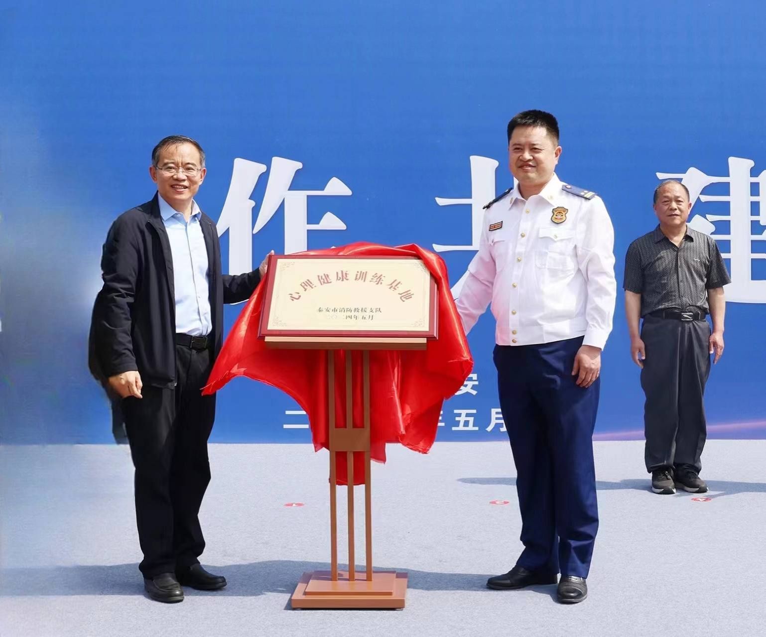 5月17日,校(院)与泰安市消防救援支队共建心理健康训练基地揭牌仪式举行。校(院)党委委员、副校(院)长王宇轩,泰安市消防救援支队党委书记、政治委员姜从涛出席揭牌仪式并致辞。