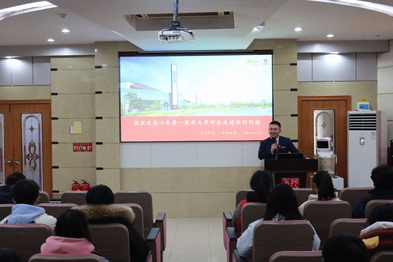 在中国阿胶博物馆中,刘波就东阿阿胶的工业旅游与科技创新融合方面展开讲解,他强调,东阿阿胶以金牌的工作质量创金牌的产品质量,以消费者为中心,构建药品、健康消费品双轮驱动增长模式,充分实现了研发与投资并购的双突破。同学们还与刘波进行积极的交流,充分了解了东阿阿胶的新要素、新技术、新理念,并对东阿阿胶的未来发展表达了最衷心的祝愿。
