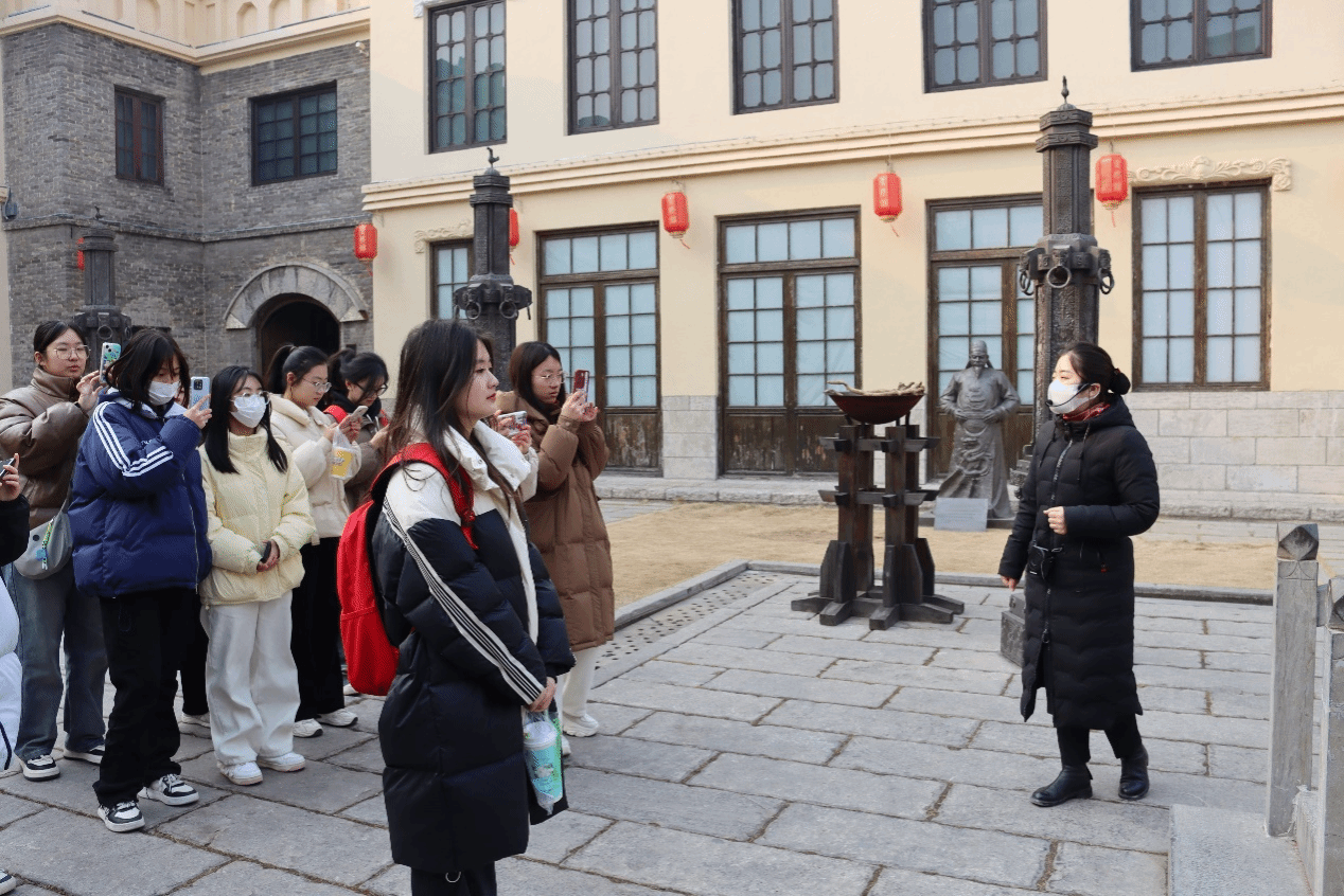 在充满民国风情的东阿影视城中,朱芳琳带领同学们观阿胶井,爬药王山,游贡胶馆,不仅了解到了东阿阿胶的炼制技艺,而且深刻感受到了清末民初的独特时代风采。在红色博物馆,通过参观东阿革命遗迹、历史事件、革命烈士、英雄东阿四个展区,同学们重走红色足迹,赓续红色血脉,感悟革命时期军民水乳交融、生死与共的光辉历程。
