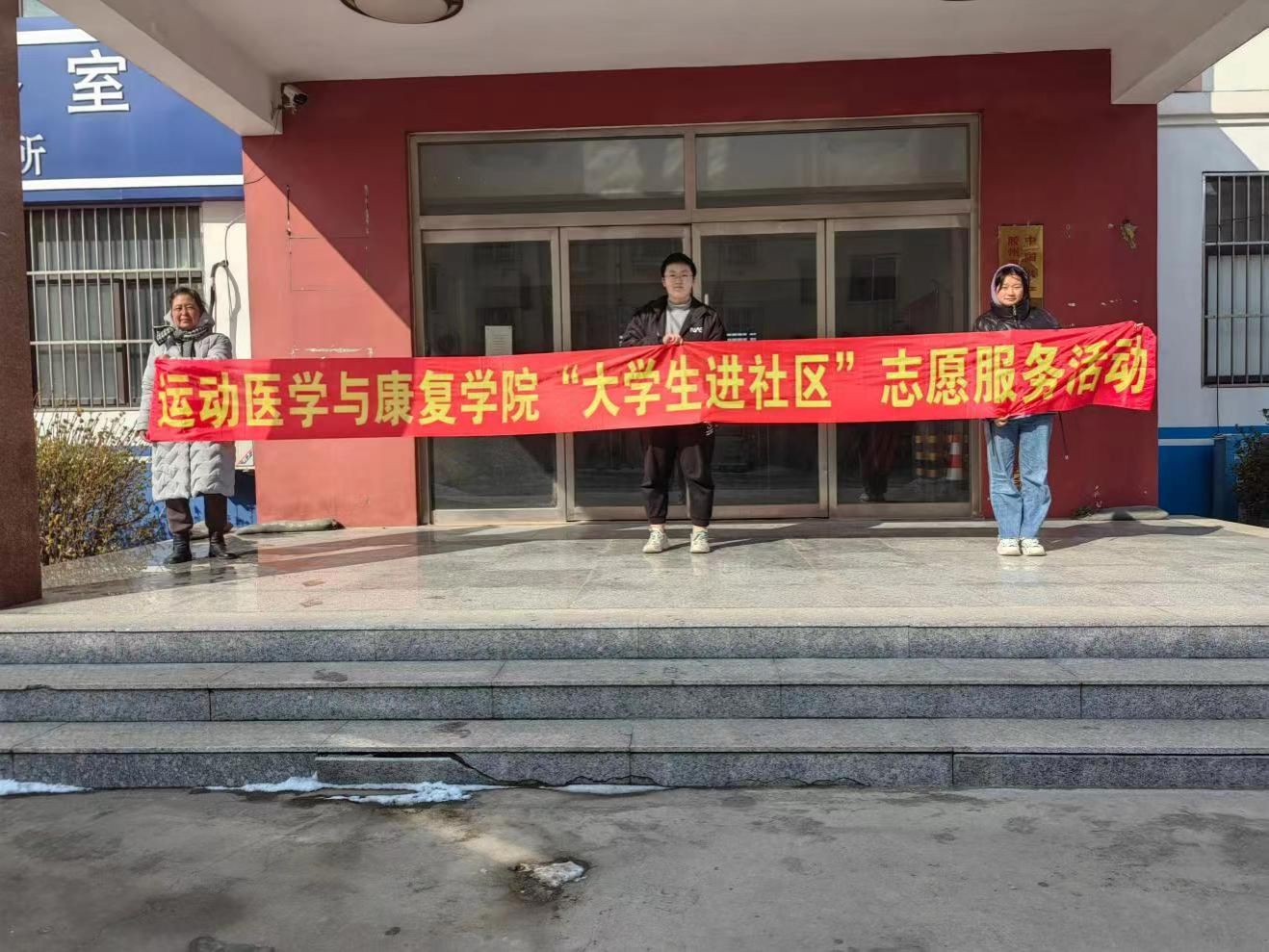 为深入学习宣传贯彻党的二十大精神,学习习近平总书记关于青年工作的重要思想,坚持“受教育、长才干、作奉献”的宗旨,引导学生发挥专业特长,将所学知识转化为奉献社会、服务人民的具体实践,寒假期间,运动医学与康复学院学生积极参与“大学生进社区”志愿服务活动,贡献青年力量。