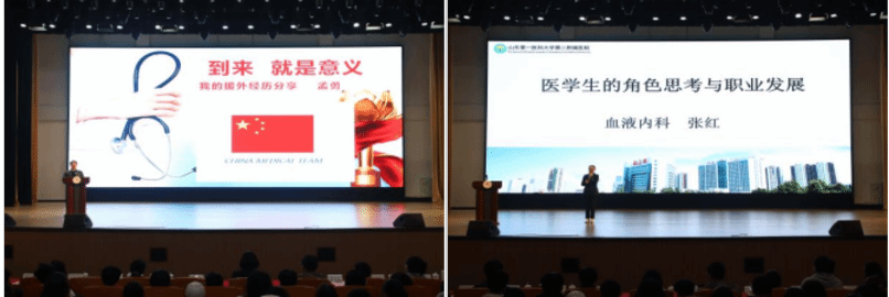 10月30日,“榜样的力量——医学生成长规划”专题宣讲会在泰安校区举办。校(院)“青年讲师团”成员,第二附属医院血液内科副主任张红和麻醉科副主任医师孟勇分别以“医学生的角色思考与职业发展”和“到来就是意义—我的援外经历分享”为题,以鲜活生动的事例解读、真实感人的建功故事打动了在场观众,引发大家深思,为同学们未来的职业发展提供了全新思路。