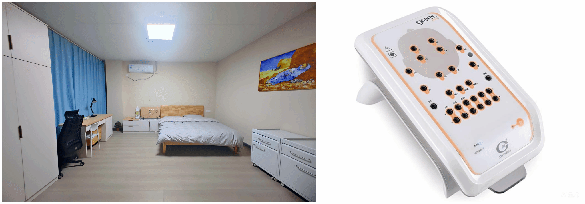 睡眠中心配备3台6导联多导睡眠检测仪,设有3间独立睡眠实验室,可实现对睡眠呼吸、脑电、肌电、眼动等多项生理信号的同步监测与分析,支持睡眠障碍、打鼾、呼吸暂停等相关疾病的精确评估与诊断。