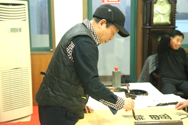 期间,邵泽文一行与教职工书法协会部分成员进行了书艺互动交流活动。