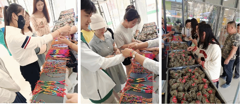 秋实苑为每个同学准备了五彩手链和甜美可口的粽子,每一个粽子和每一条手链都是对同学的祝福,祝同学们“粽”横四海,平安和顺,万事明朗,乘风破浪,更创美好明天。
