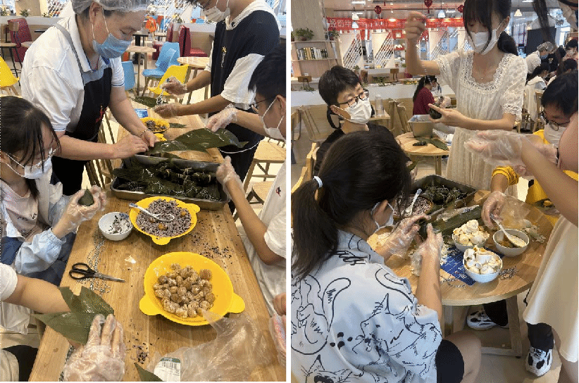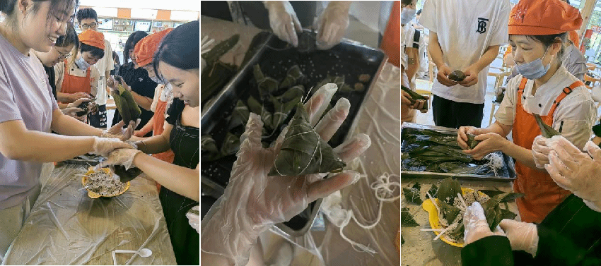 凤凰厅工作人员和同学们其乐融融体验包粽子的乐趣,讨论家乡习俗,感受到节日的气氛和家的气息。