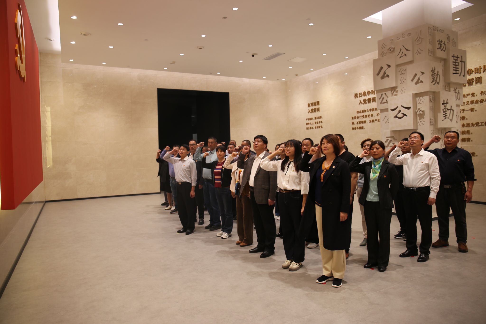 在宣誓厅,全体党员面向党旗庄严宣誓,重温入党誓词,感悟初心使命。