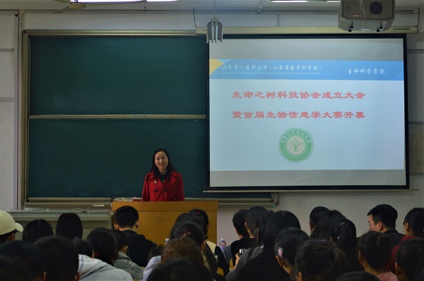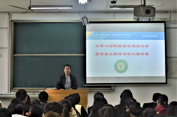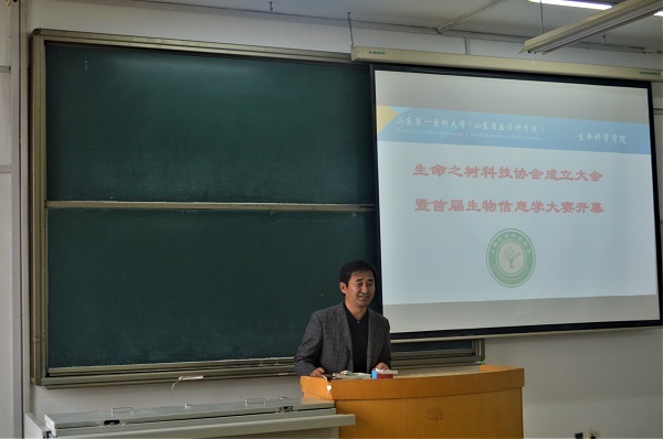 为贯彻学院“一专业一特色,一专业一协会”的发展理念,11月1日下午,生科院于教学南楼C2003举办生命之树科技协会成立大会暨首届生物信息学大赛开幕式,校团委孙琳婧、生科院院长张忠、生物信息学指导老师苗增民、杨晓、团总支刘兆玺、辅导员卢静以及协会全体成员参加了本次大会。会议由刘兆玺主持。