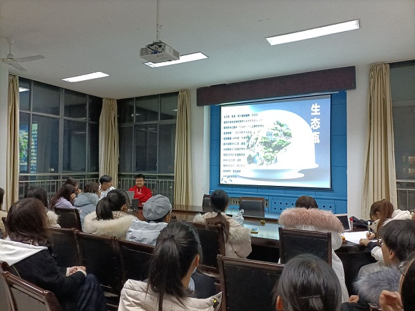 首先,来自2019级生物制药的主讲人刘德斌围绕生态瓶、唇膏、发酵茶展开讲解,对其制作原理、组成成分、制作过程以及作用功效进行了详尽全面且幽默的阐述。紧接着,主讲人通过PPT展示了各种各样的发酵茶、唇膏的手工DIY、生态瓶的制作,以及一些水生植物生态瓶的图片和制作方法。讲解结束,自由发挥环节中,成员们进行了培养蘑菇、制作香薰、使用培养基培养菌种绘画等趣味十足的小实验。最后,主持人对本期科学探索活动进行了总结。