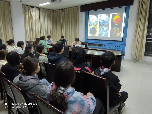 活动开始,力夫科技协会岳庚辰同学向大家展示《微生物画制作》专题报告。他以ppt与视频相结合的方式,全方位的向大家讲解了微生物画的基本概念、制作方法、实验工具的使用方法以及注意事项。岳庚辰同学向同学们展示了许多国内外高校的优秀作品,使大家以更全面的视角领略微生物画的艺术美,也让大家对于微生物画有了更浓厚的兴趣。讲解结束后,大家就微生物画的发展和应用的问题展开了激烈的讨论,提出了很多建设性的想法,对力夫科技协会的未来有了更明确的方向。